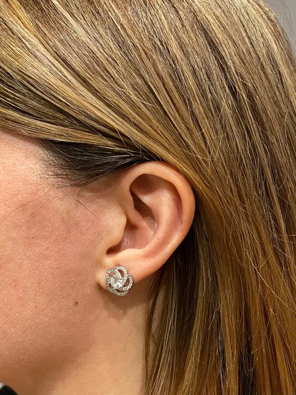 Серьги-гвоздики женские из серебра 925 пробы с фианитами