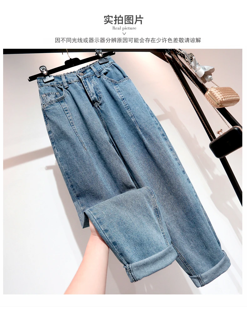 Джинсы женские свободные, с высокой талией, на молнии, полной длины, 4xl, 5xl, 6xl, размера плюс