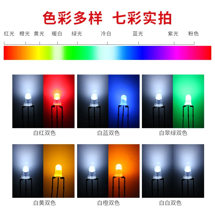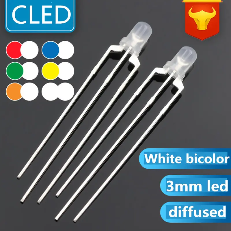 1000 шт. Бесплатная доставка 3 мм круглый светодисветодиодный 3-PIN белый двухцветный DIP-светодиод красный и белый синий и белый Gбелый рассеянный 3 мм DIP-светодиод (CE Rosh)