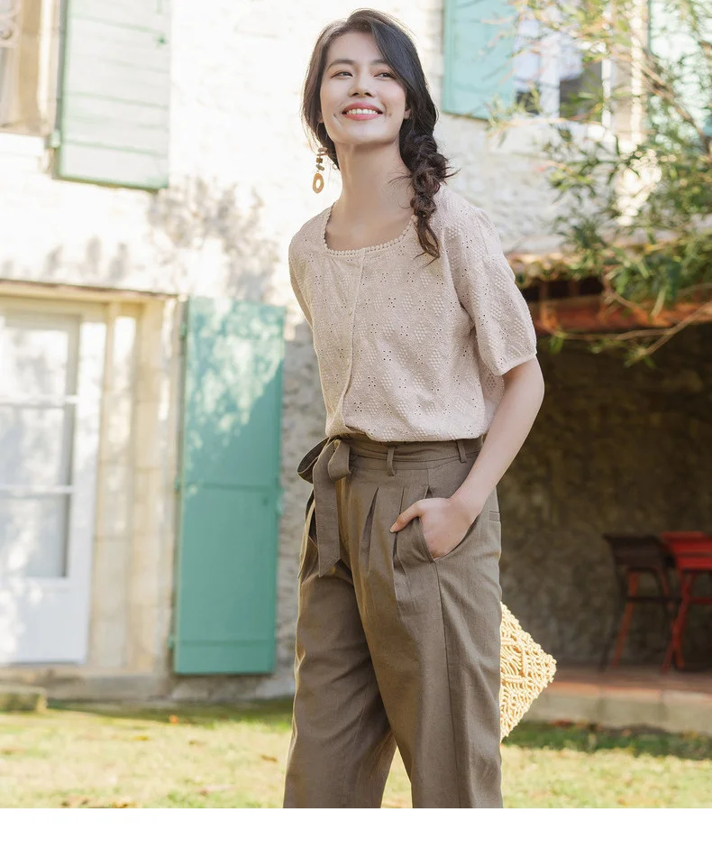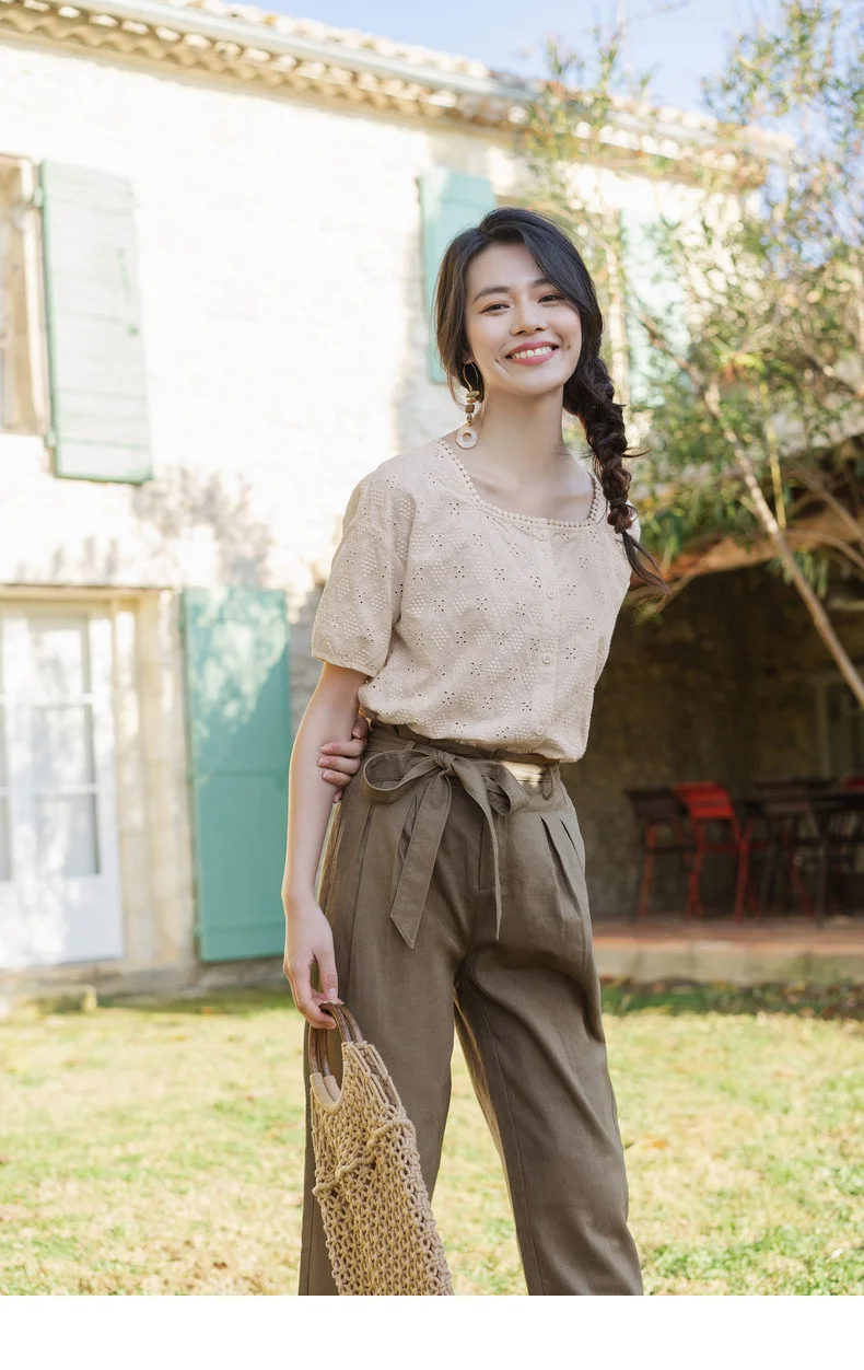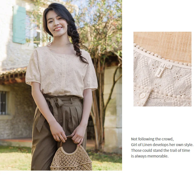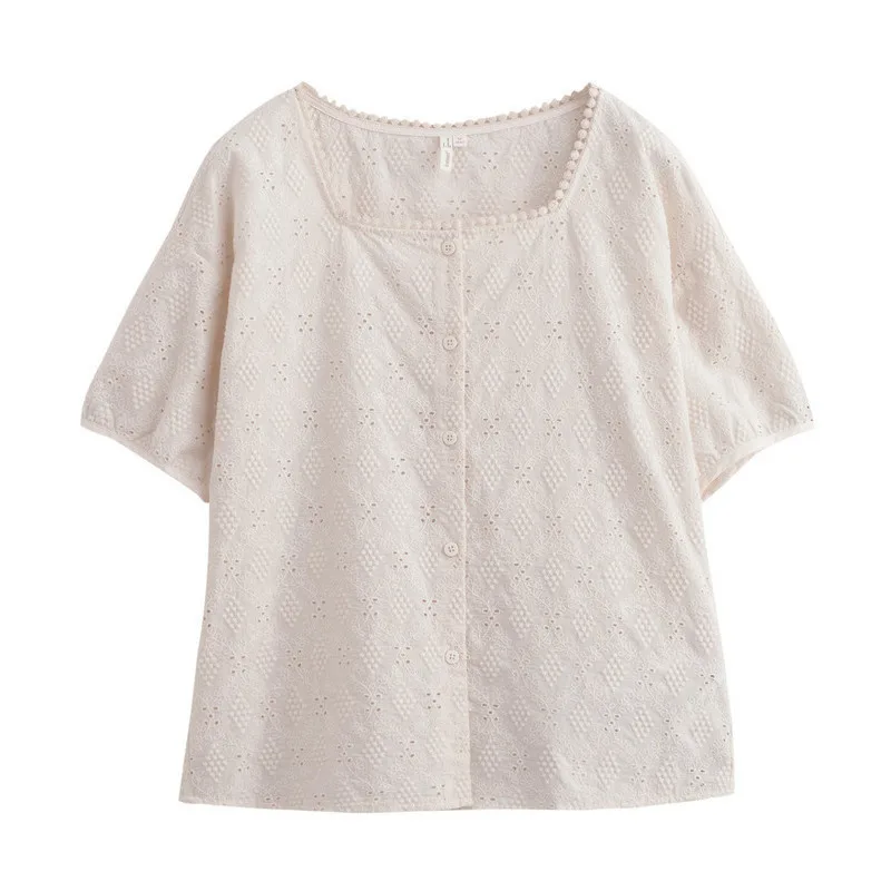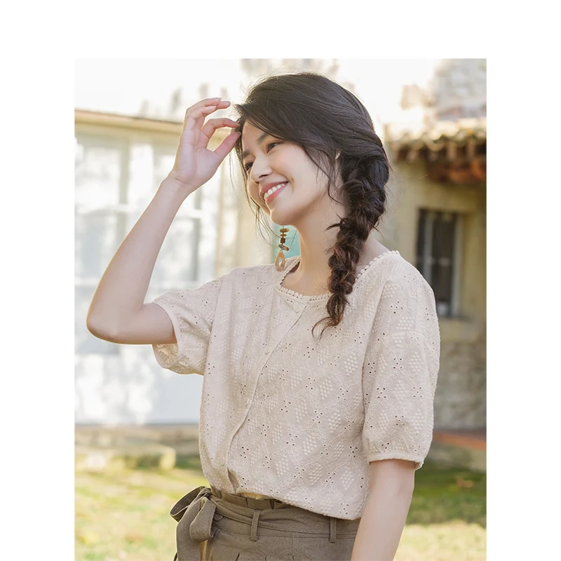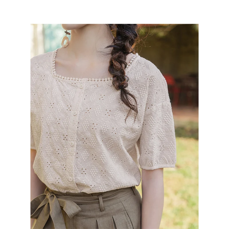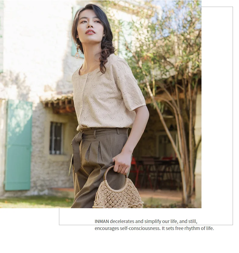 INMAN летняя жаккардовая Свободная блузка из чистого хлопка с кружевным квадратным вырезом