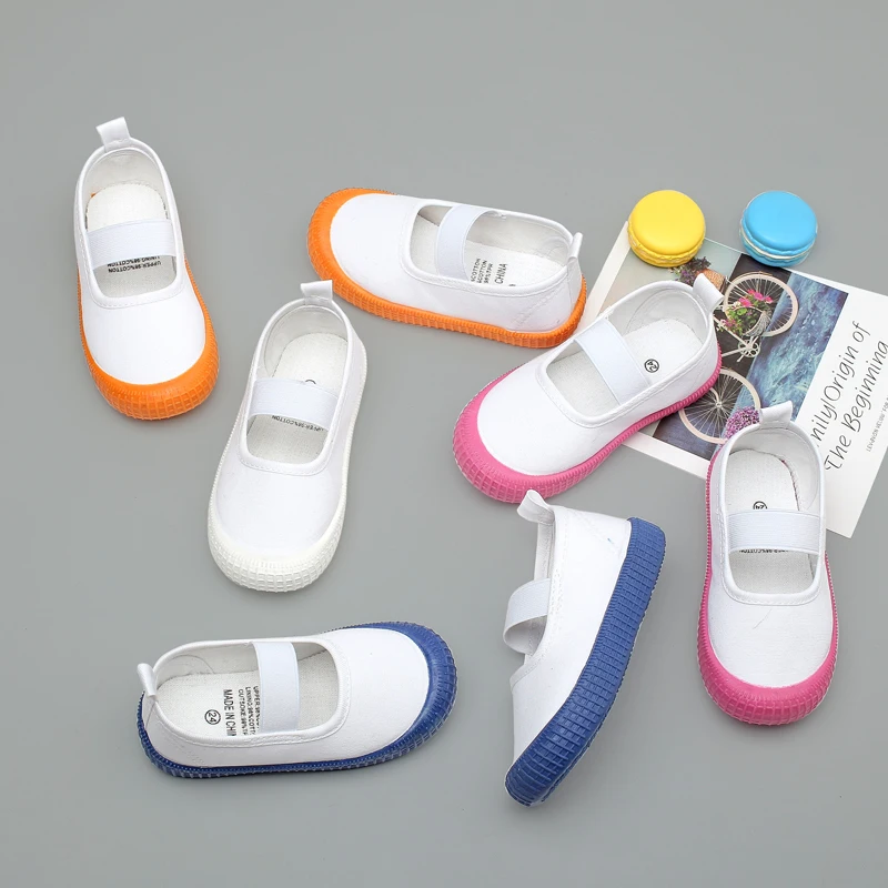 Детские белые парусиновые туфли для девочек, детские кроссовки, для детского сада, для студентов, модная дышащая мягкая повседневная обувь