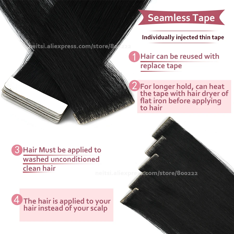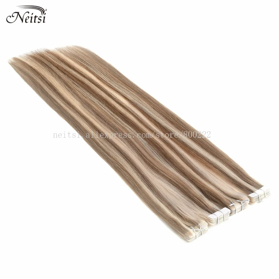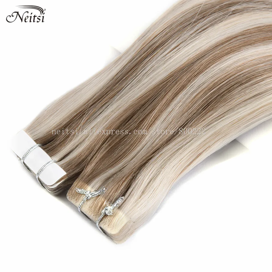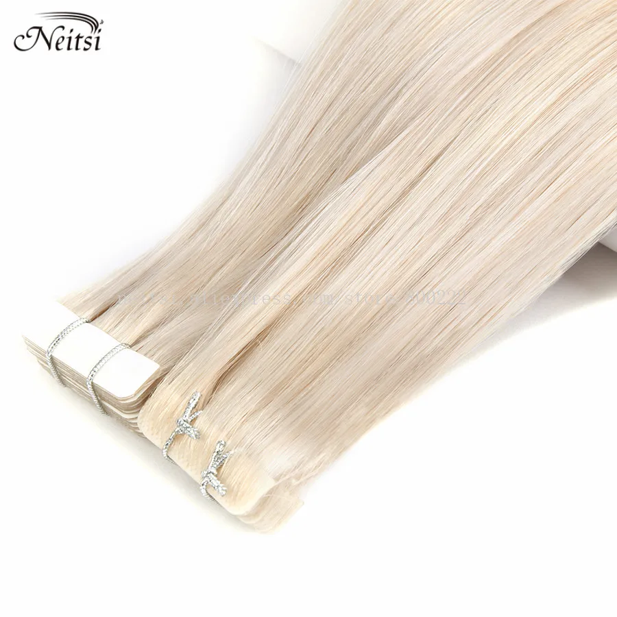 Neitsi Натуральные Прямые волосы из искусственной кожи для наращивания, 22 дюйма, 55 см, блонд, 3*0,9 см, ручная работа на ленте, человеческие волосы Remy