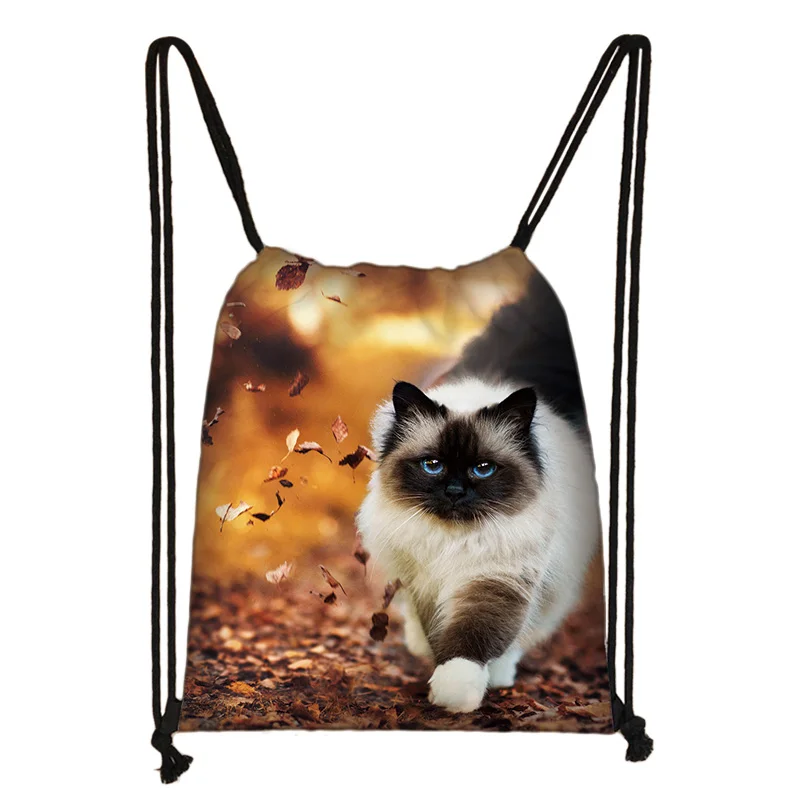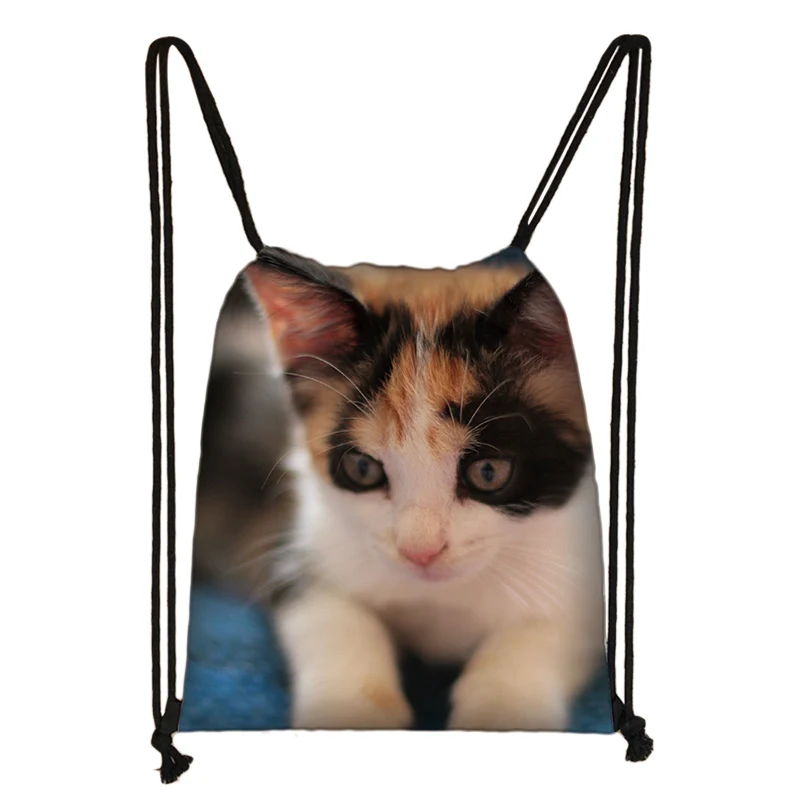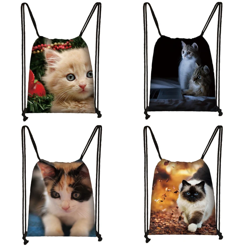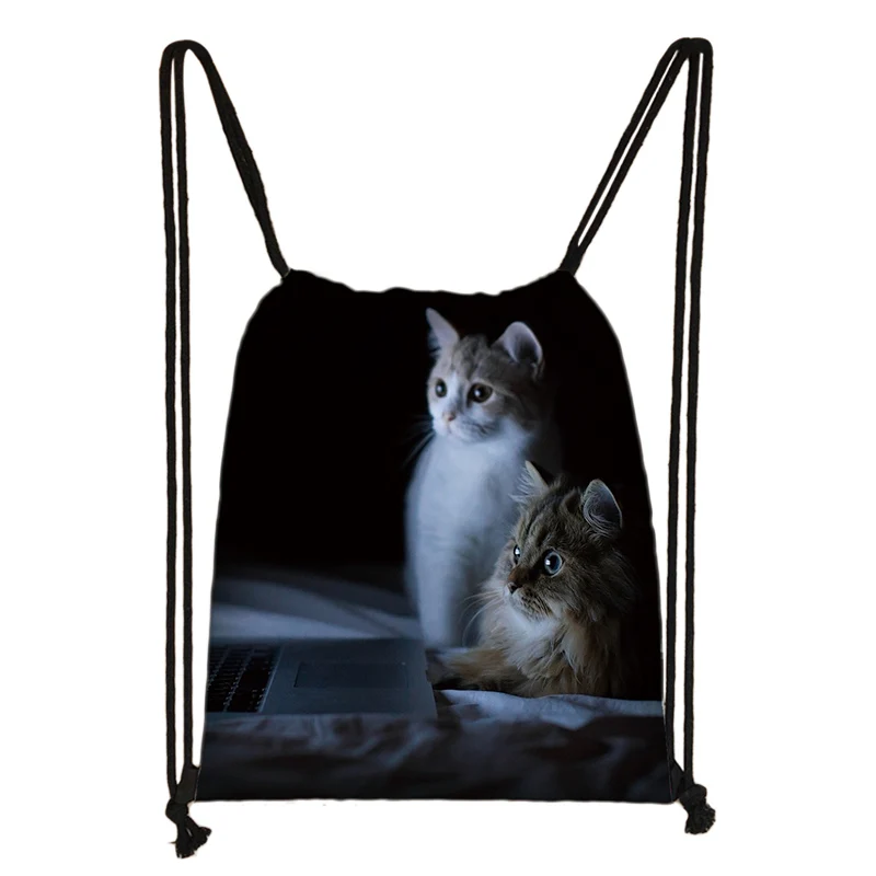 Милая сумка на шнурке с принтом кота, Женская Подростковая дорожная сумка, школьная сумка, коричневый рюкзак для девочек и мальчиков, модные женские сумки для хранения, To333
