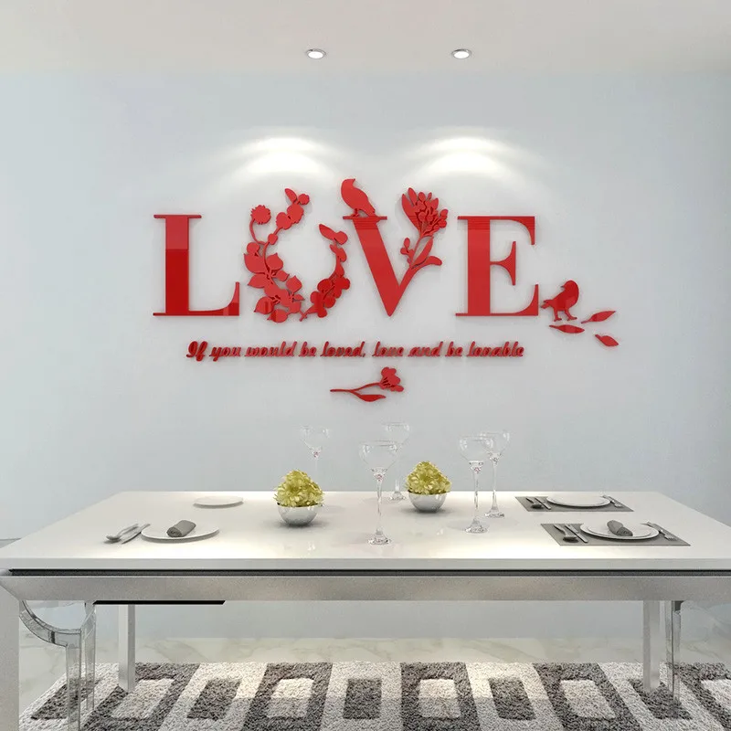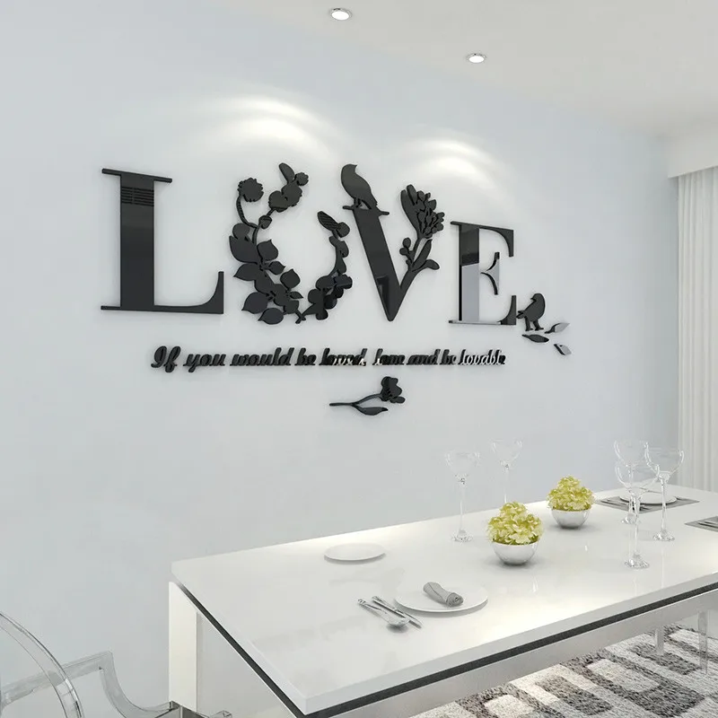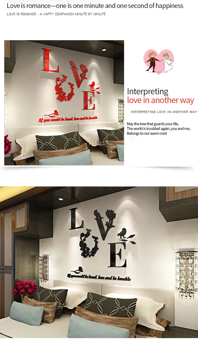 Акриловые 3d зеркальные настенные наклейки Love, Фоновые наклейки для телевизора, спальни, прикроватных тумбочек, украшения для свадебной комнаты, Декор для дома и прихожей
