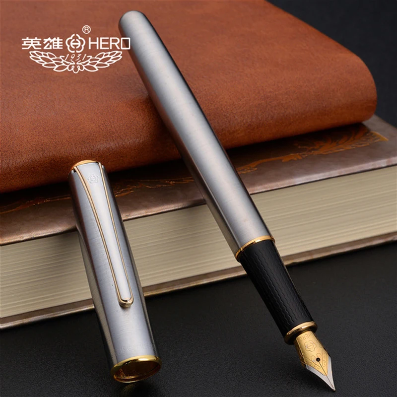 Hero 704 металлическая чернильная авторучка Посеребренная Роскошная деловая Мужская авторучка для письма, купить 2 ручки, подарок