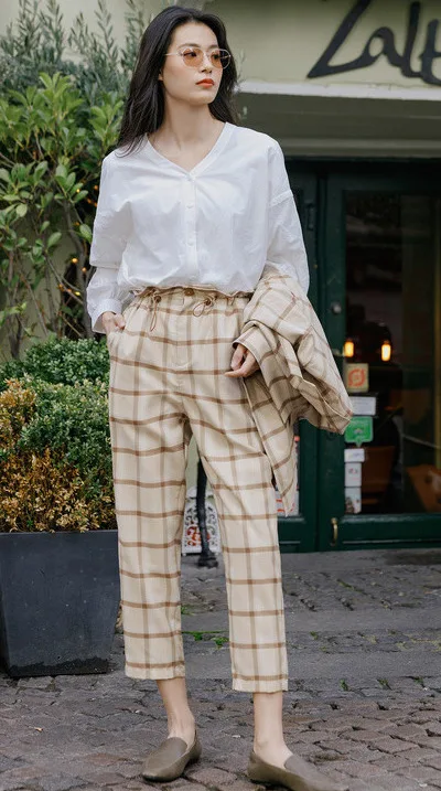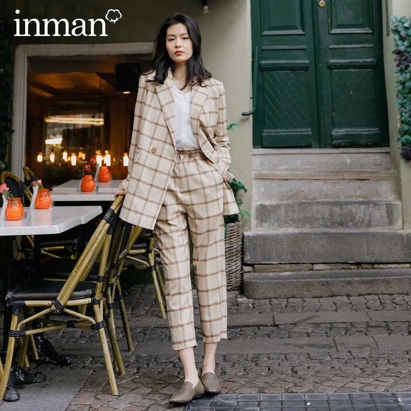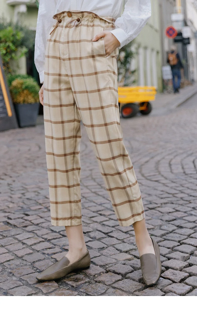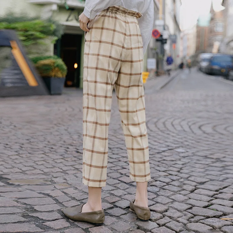 Костюм женский винтажный в клетку, клетчатые брюки-Капри в винтажном ретро-стиле, повседневный офисный костюм в английском стиле, весна-осень