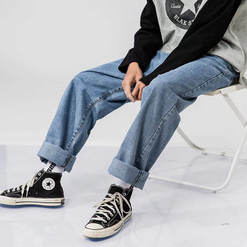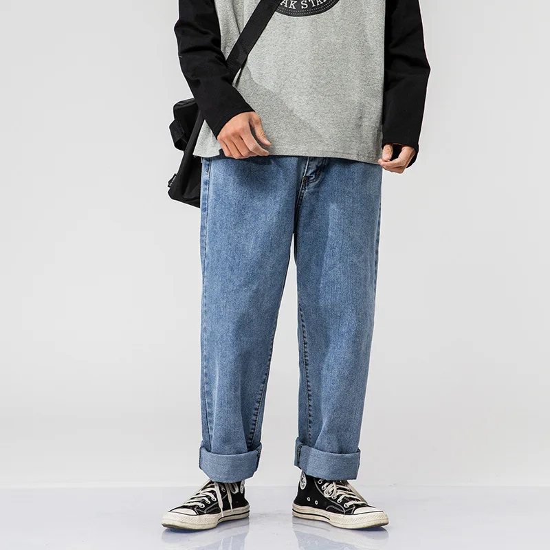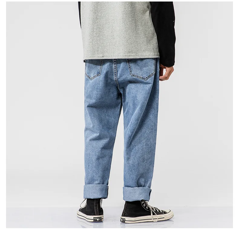 Джинсы для мужчин винтажные Модные свободные повседневные широкие джинсы брюки мужские в стиле Харадзюку Корейская уличная одежда хип-хоп джинсовые брюки