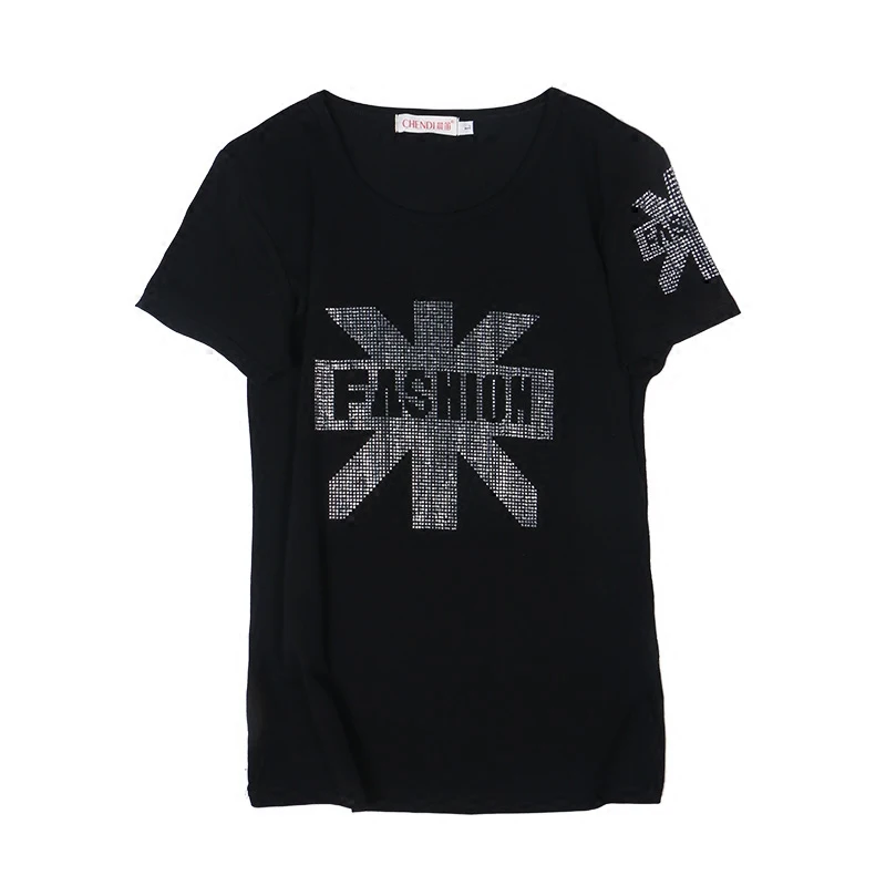 Женские футболки, хлопковая футболка с коротким рукавом, Новинка лета 2020, топы со стразами, футболки, полосатые женские футболки T003
