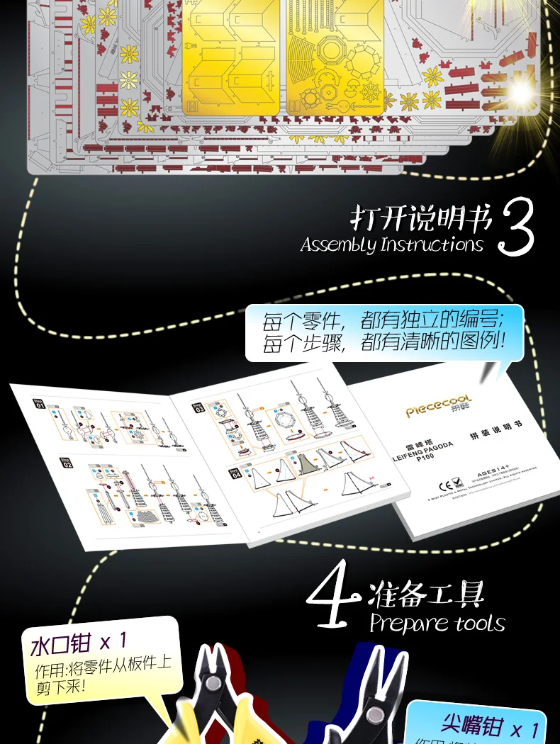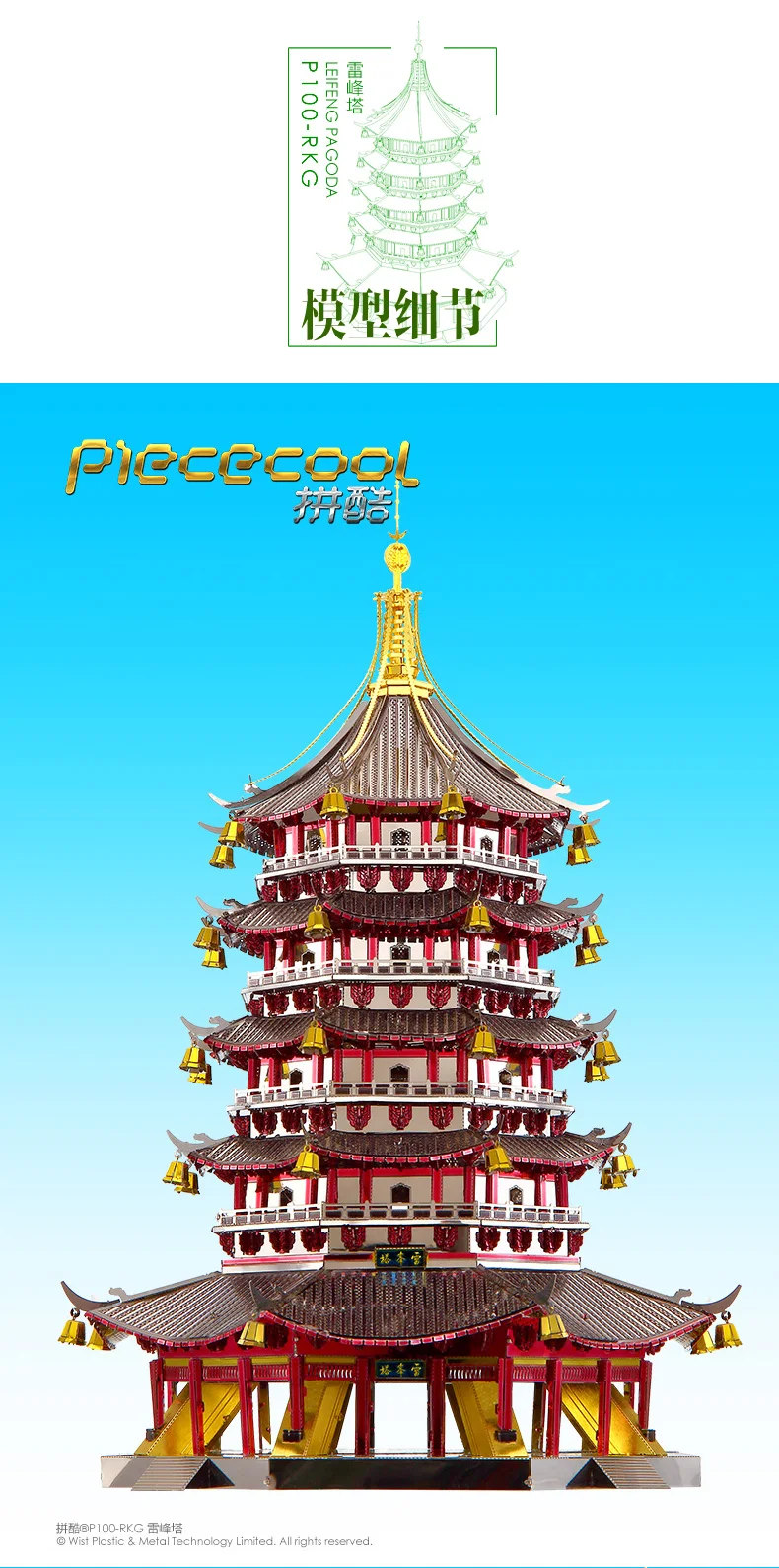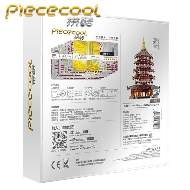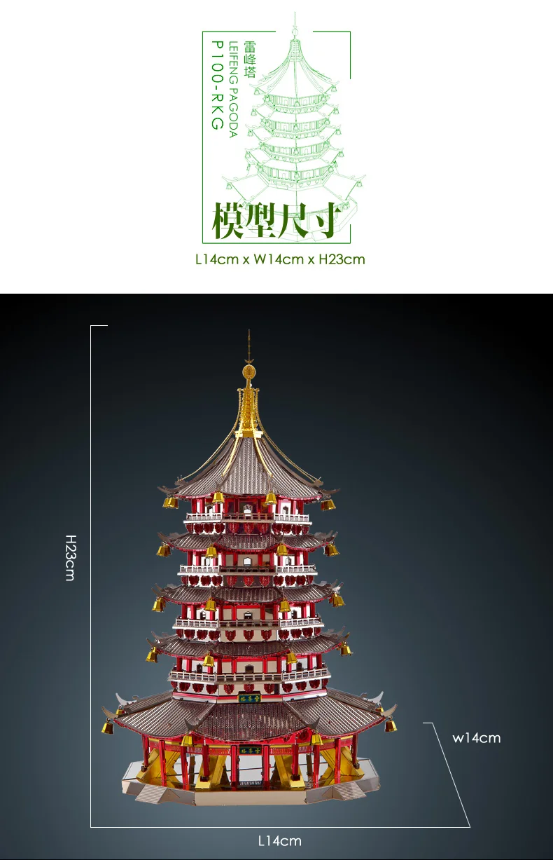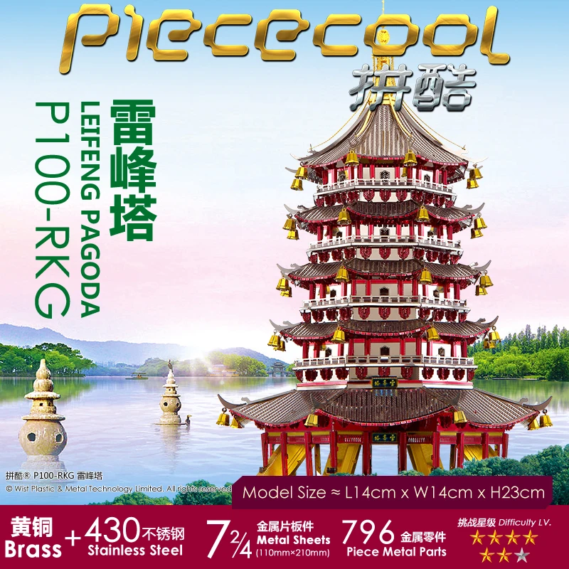 Металлический 3D-пазл Piececool, модель в виде пагоды Leifeng для сборки своими руками, лазерная вырезка, настольное украшение, подарок для Audlt