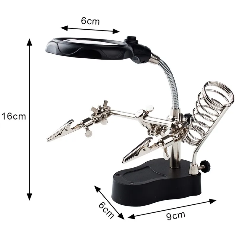 Настольная светодиодная лупа для сварки с подставкой, Вспомогательный зажим, зажим типа крокодил, регулируемая модель для пайки из стекла