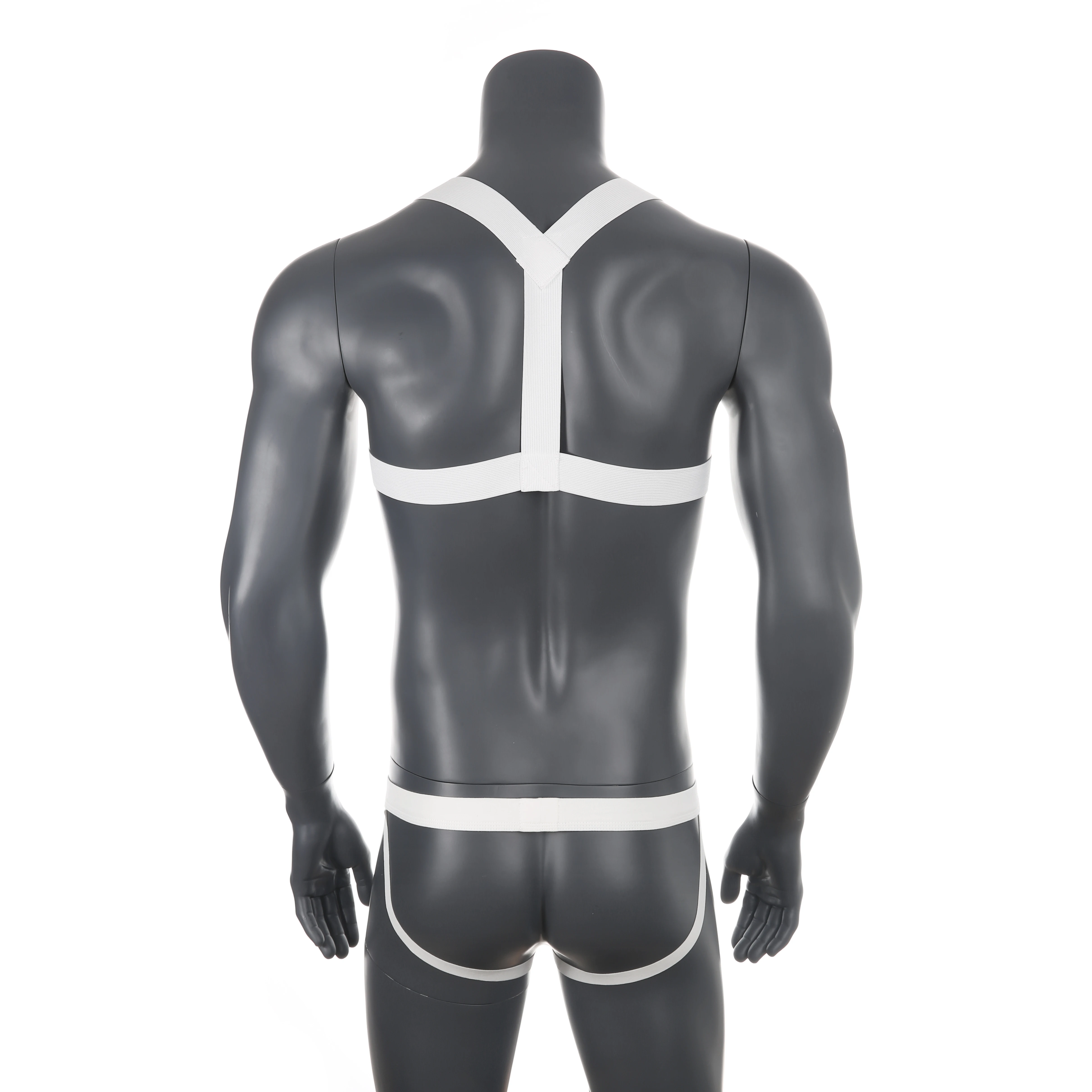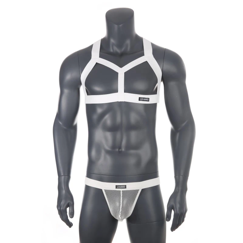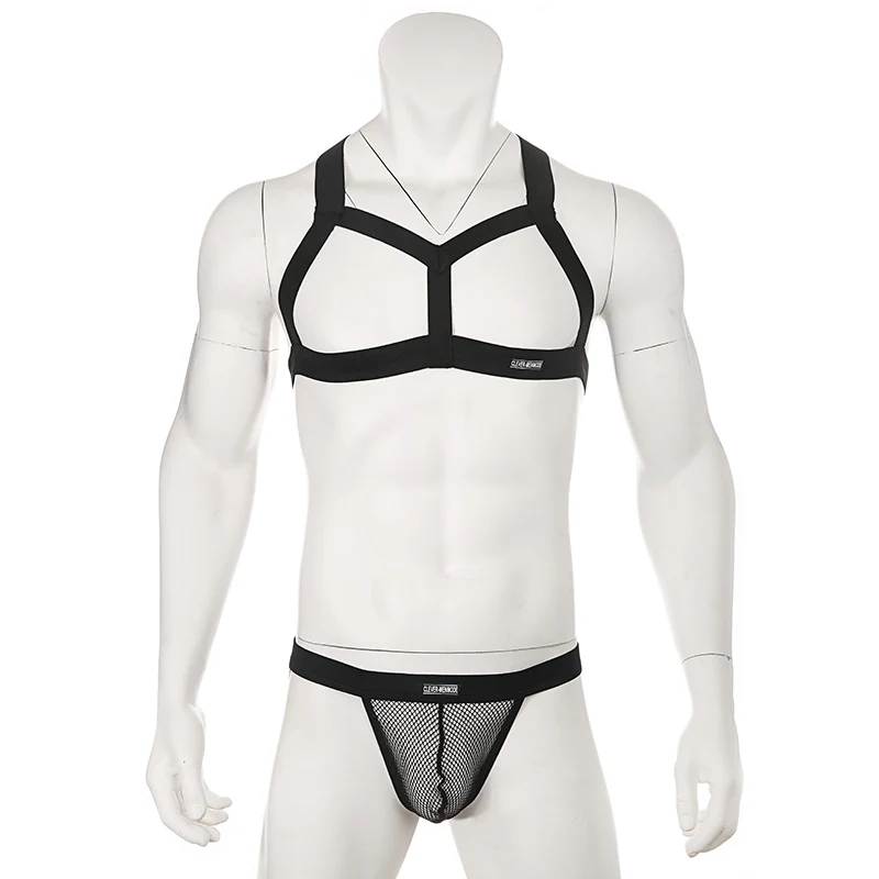 Мужской комплект из нагрудный ремень для тела эластичных плечевых ремней, сетчатые стринги, бандаж, сценический костюм, Клубная одежда, сексуальный бондаж для мышц