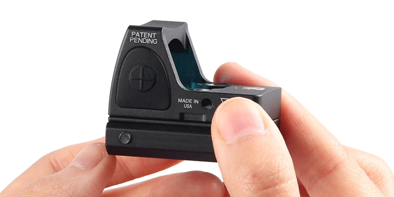 Мини-прицел с красной точкой может регулировать высоту и регулировать ветровое стекло. Яркость красной точки может быть изменена сильнее или темнее.