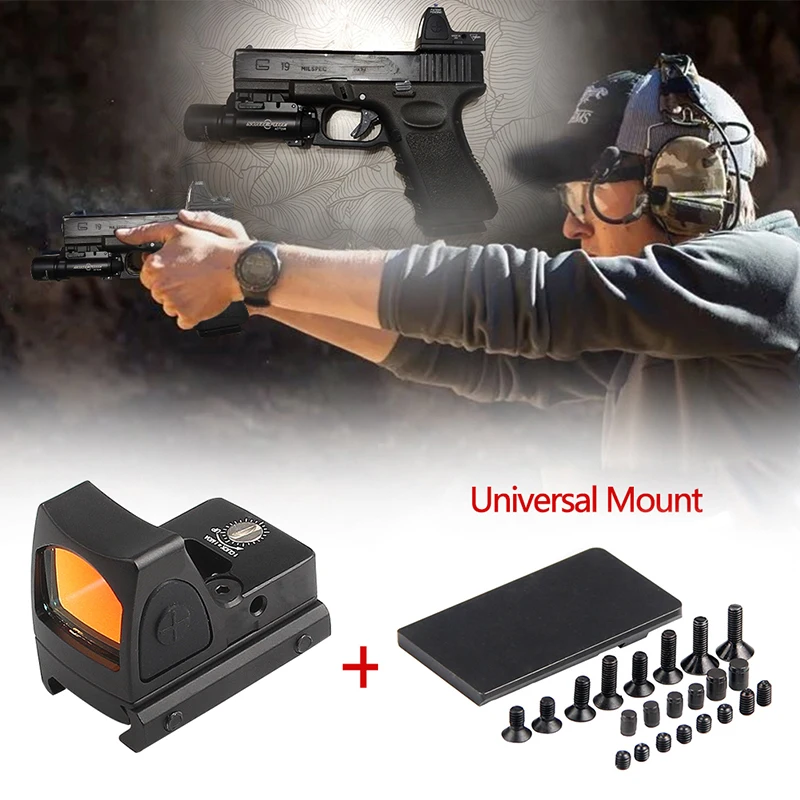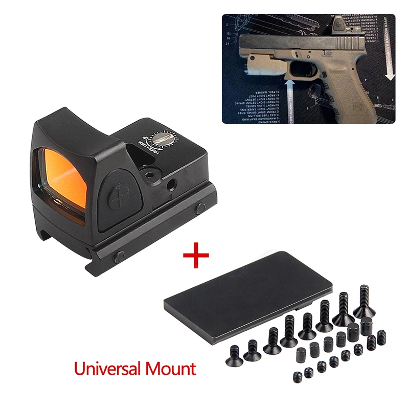 Мини красная точка зрения не только имеет одно крепление для 20 мм Пикатинни, но также имеет одно крепление 22 мм. Но крепление 22 мм не подходит для всех типов пистолета. Если у вашего пистолета есть трапециевидный слот, Это крепление 22 мм не подходит для вашего пистолета. Вам нужно одно универсальное крепление.