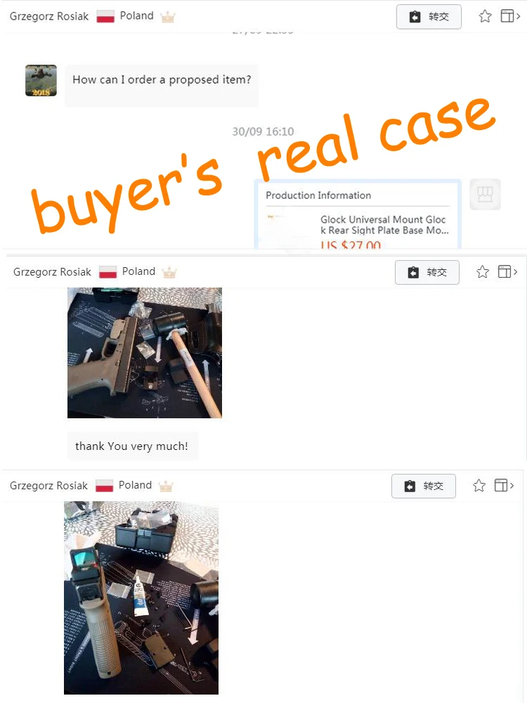 Этот клиент купил один мини-прицел в красный горошек в моем магазине. Он считает, что Оригинальное мини-крепление в красный горошек не подходит для его пистолета. Я рекомендую ему Универсальное крепление. И он может установить свой Мини-Красный точка зрения на пистолет, наконец, через Универсальное крепление.