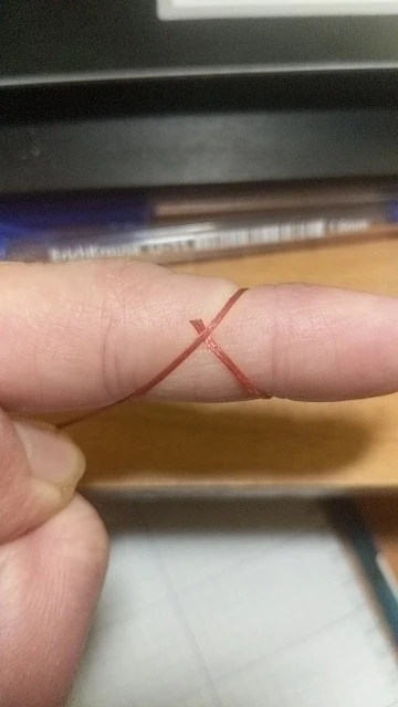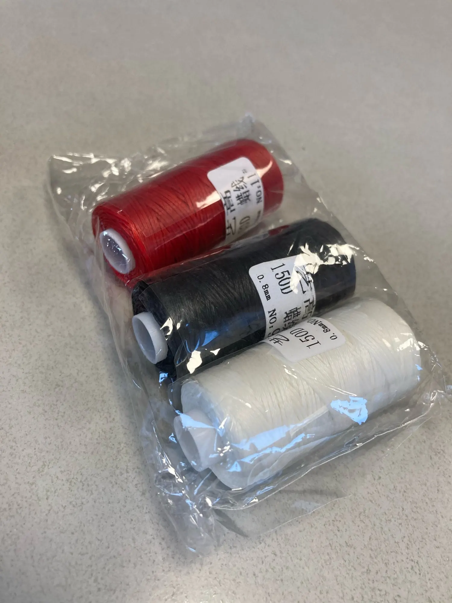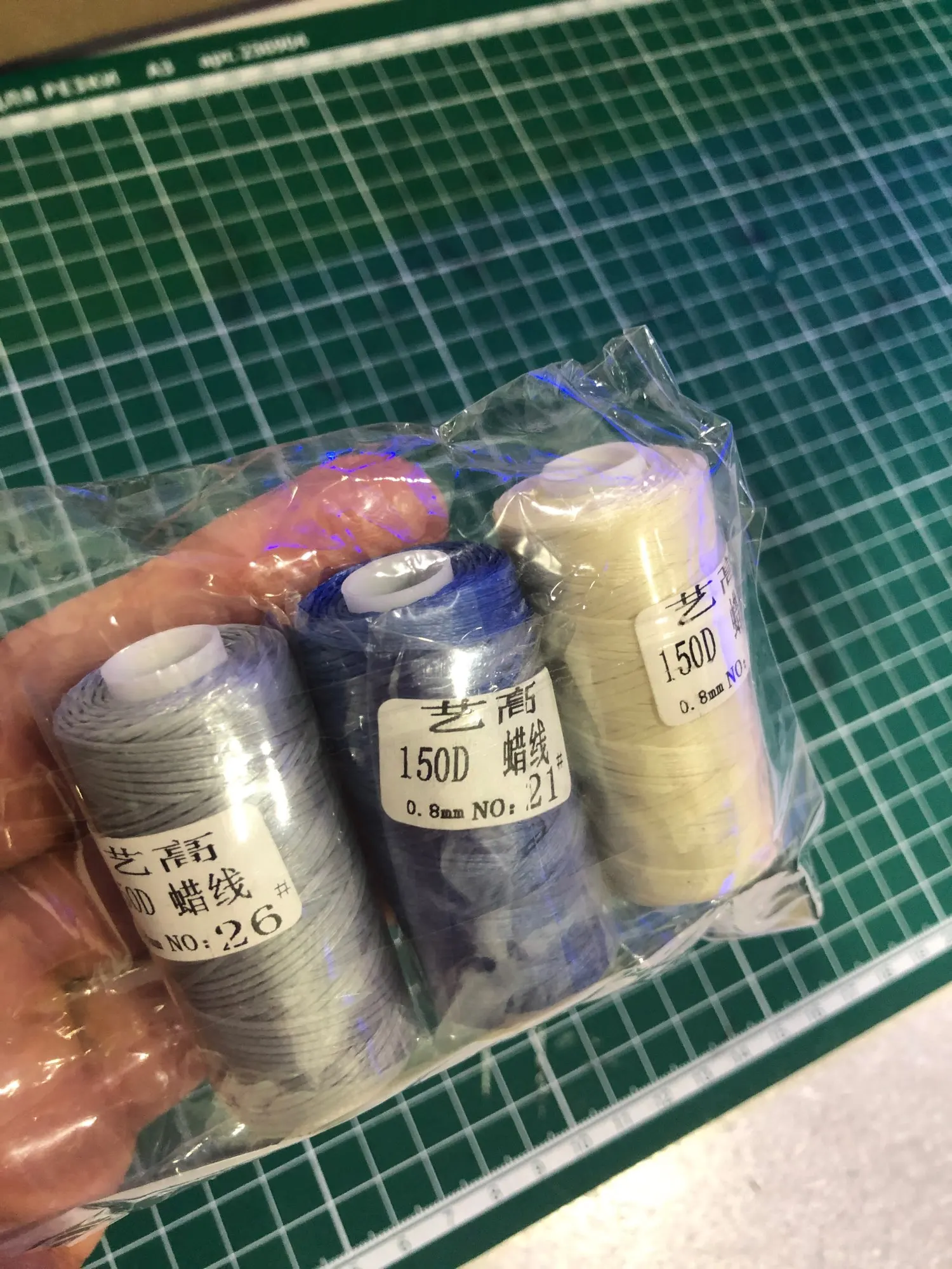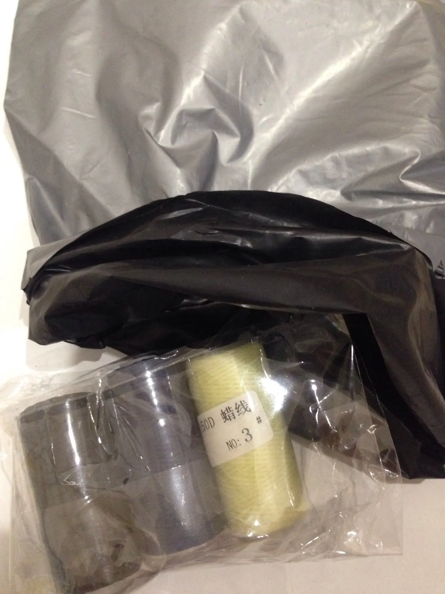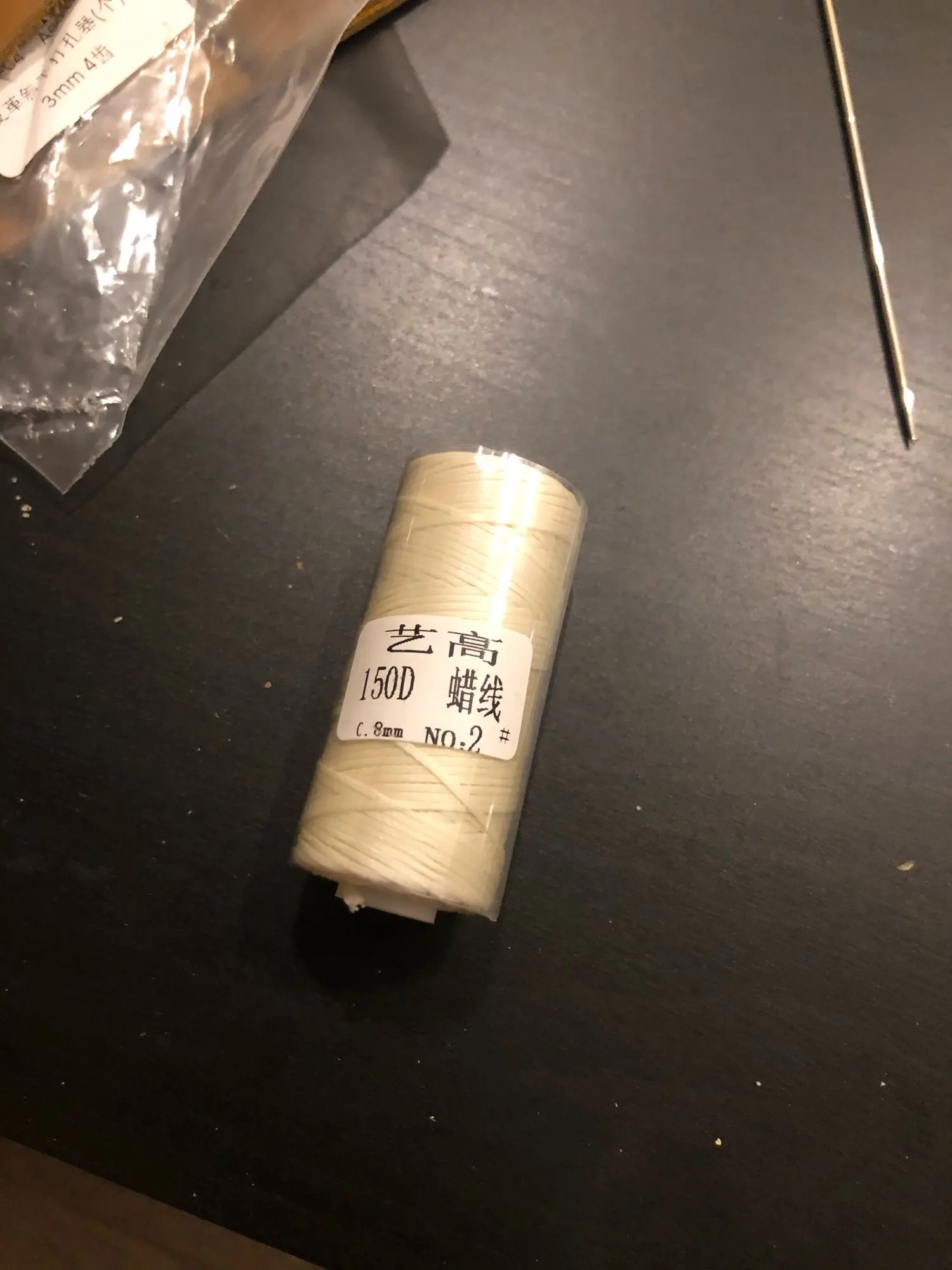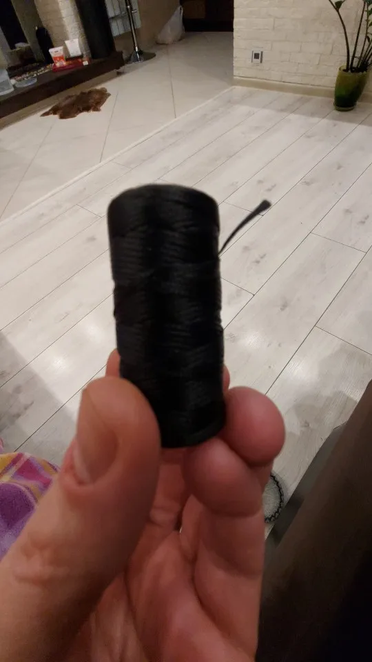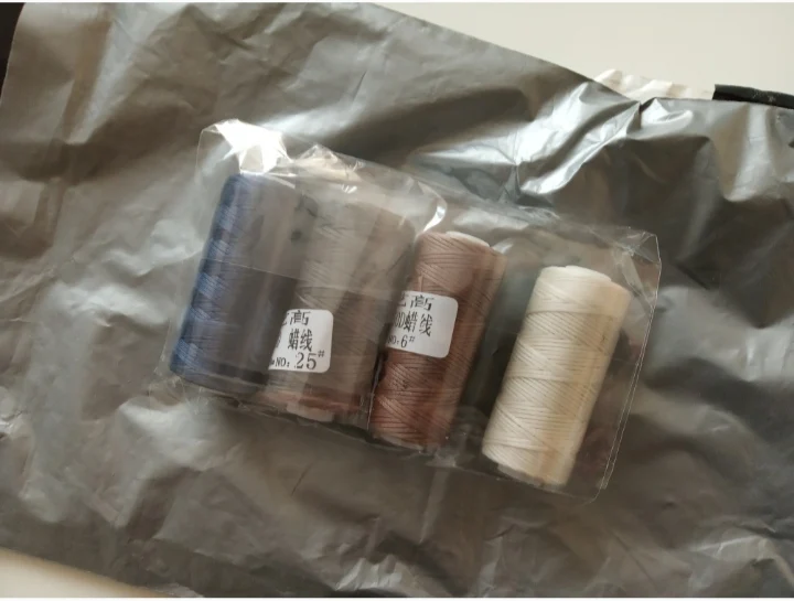 Нить слабо покрыта воском. Обычно хорошо покрытая воском нить хорошо держит форму - можно ее снова намотать на катушку и она будет плотно держаться. Эта нить только слегка покрыта воском и слетает с катушки. На фото все получил в этот день с алиэкспресс от разных продавцов