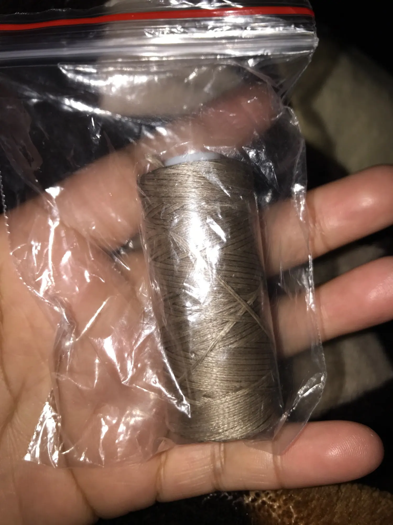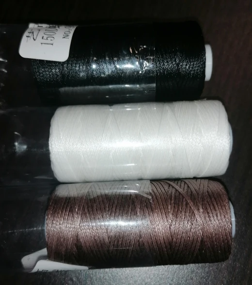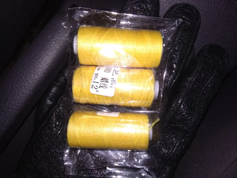Не знаю подойдут ли эти нитки для работы с кожей. Больше похожи на обычные нитки для швейной машины)