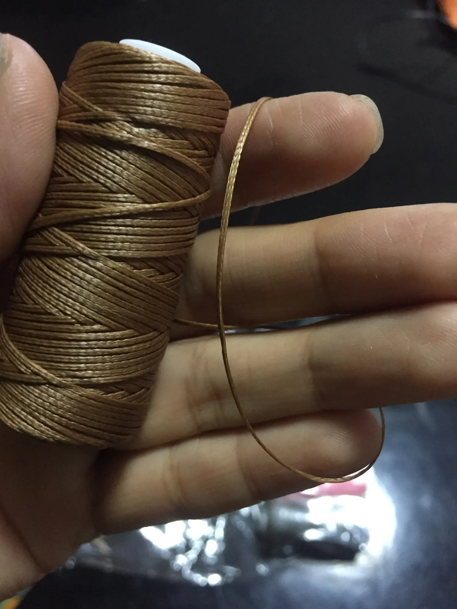 Немного не соответсвует фото, оказался чуть другого оттенка, более темного, а по качеству гораздо лучше, чем другие вощеные дешевые шнуры с алика
