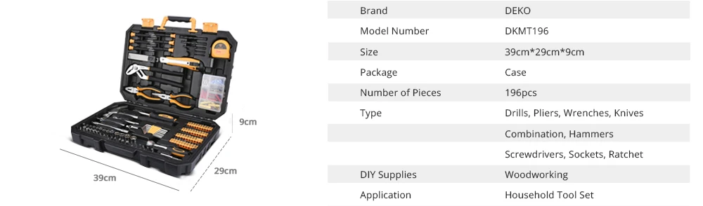 DEKO 196 шт., профессиональный набор инструментов для ремонта автом...