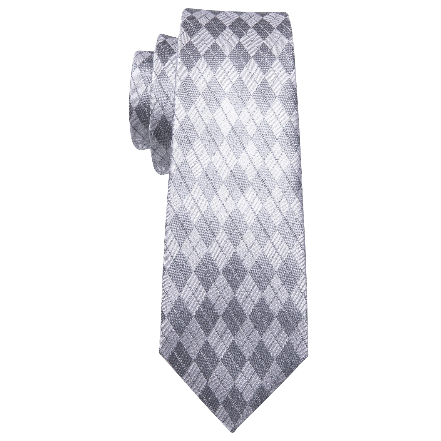 Шелковый галстук набор носовой платок запонки модный галстук Серебр...