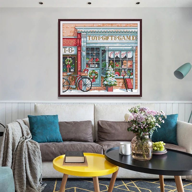 Рождественский подарок, магазин игрушек, Набор для вышивки крестом 11CT 14CT, сделай сам, вышивка, рукоделие, мультяшная вышивка, набор для украшения дома, живопись