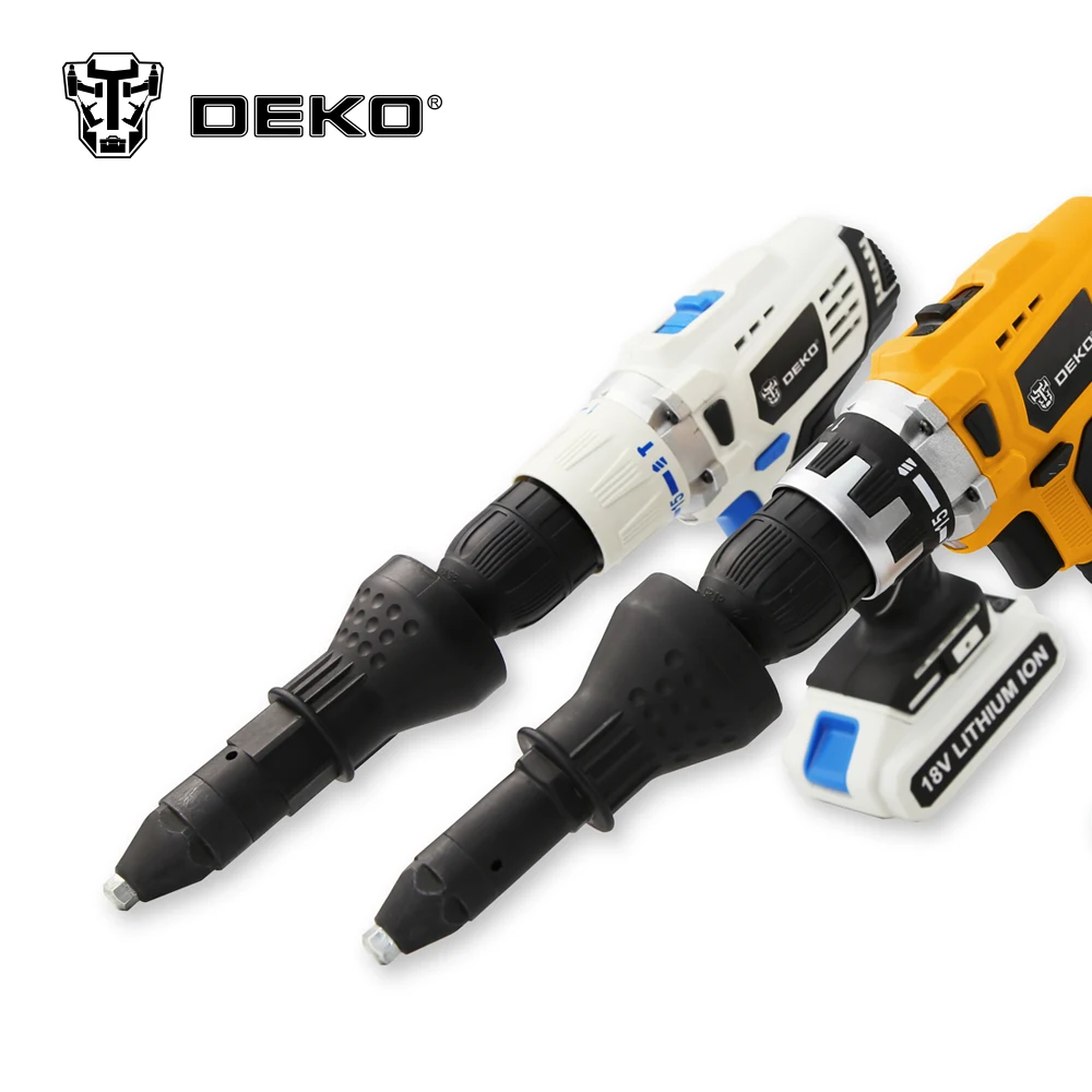 DEKO электрический пистолет для заклепок, инструмент для клепки, беспроводной адаптер для клепки, инструмент для вставки гаек, адаптер для клепки