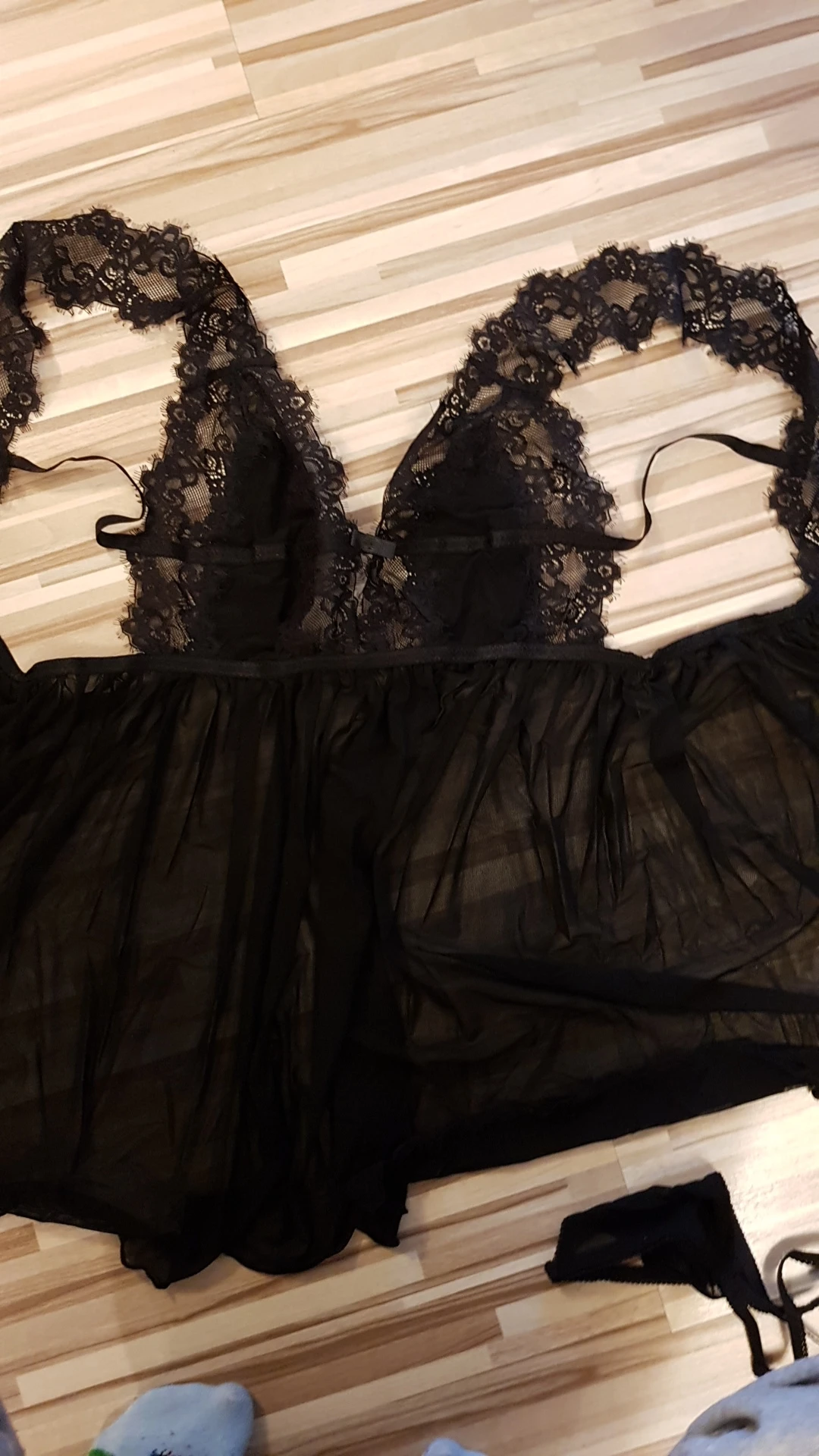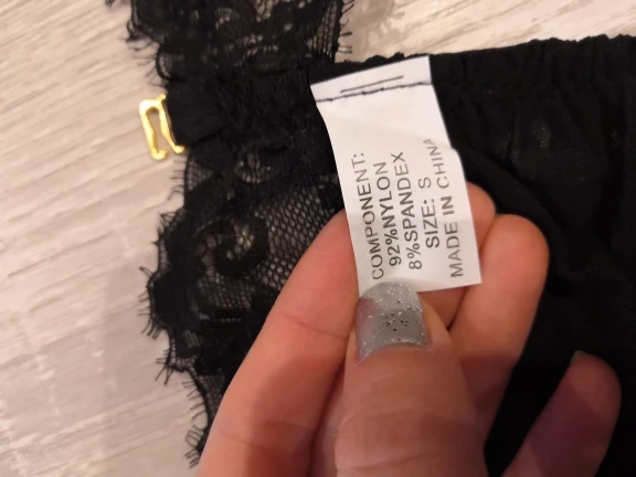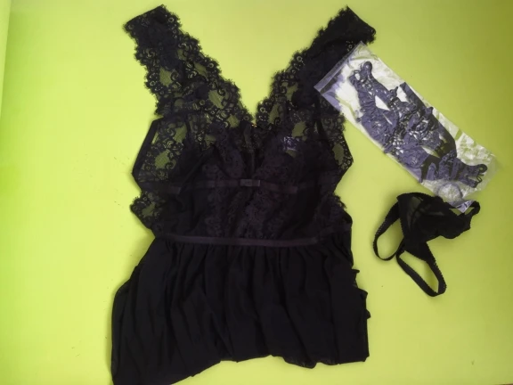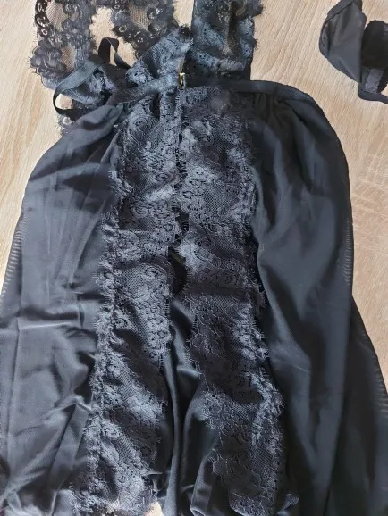 Очень приятный на ощупь. Размер S, а именно то, что растягивается и идеально подходит для повседневной носки. Кроме того, бюст выглядит хорошо, но не является универсальным или каким-то образом подтянутым. Ничего не выходит, и не wrzyna. У меня есть размер 70E в ЕС. Трусики с тремя ремешками крест-накрест. Довольно грязный, но и на ощупь. Дополнительно кружевная маска для глаз. Также хорошо выглядит