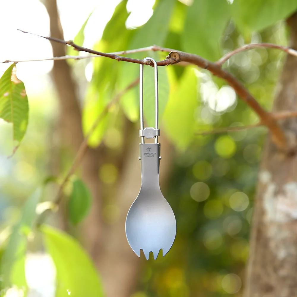 Титановая Складная ложка-вилка с матовой отделкой, чтобы прослужить долго.