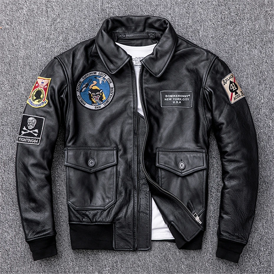 Куртка-бомбер мужская из натуральной кожи, Авиатор ВВС, винтажная классика, 2020