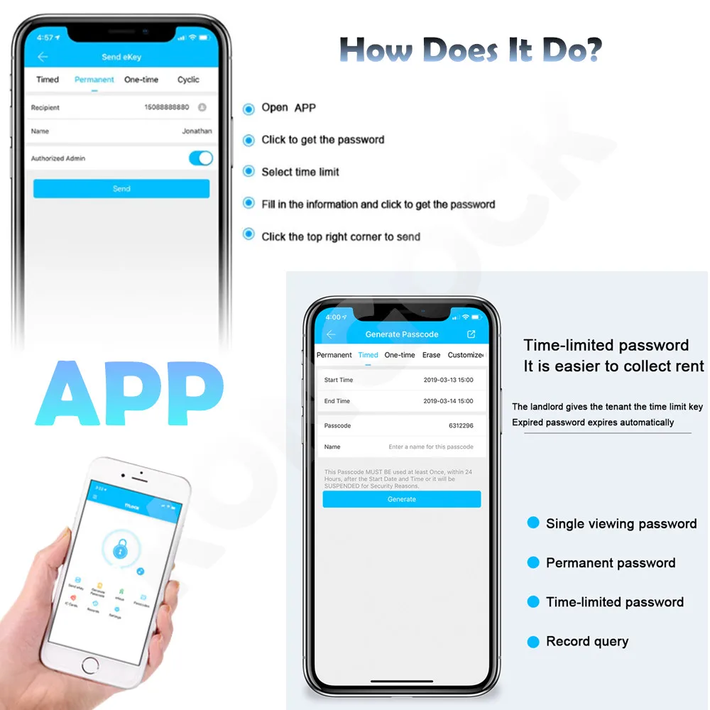 Bluetooth TTlock APP умный электрический дверной замок с отпечатком пальца, цифровой пароль RFIC card key доступ для отелей и квартиры airbnb