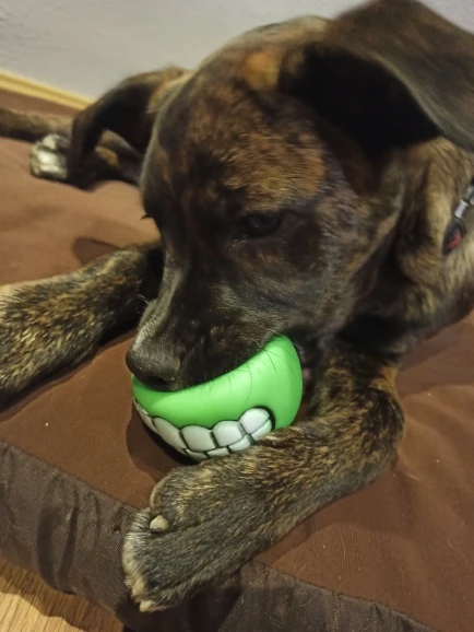М'ячик отримала, непаганий, ае не для собак, що люблять гризти. Слабкі до зубів собаки - моя на 2-й раз зробила в ньому дірку. Але продавець відмінний, доставка буа скорою.