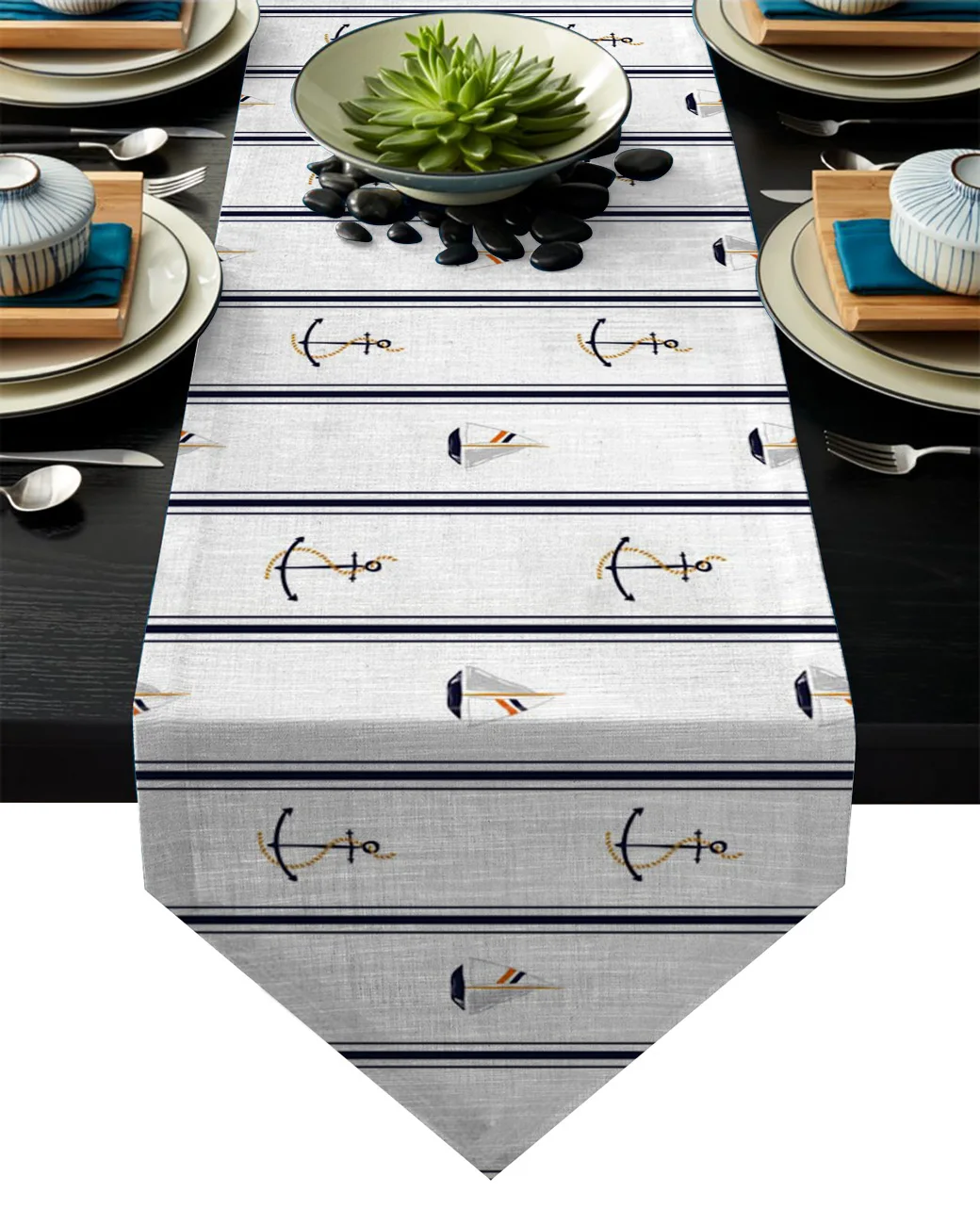 Лодка Якорь океан корабль черный стол бегун стол флаг Домашняя вечеринка Декоративная скатерть настольные Бегуны