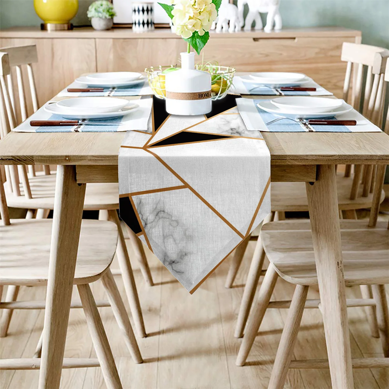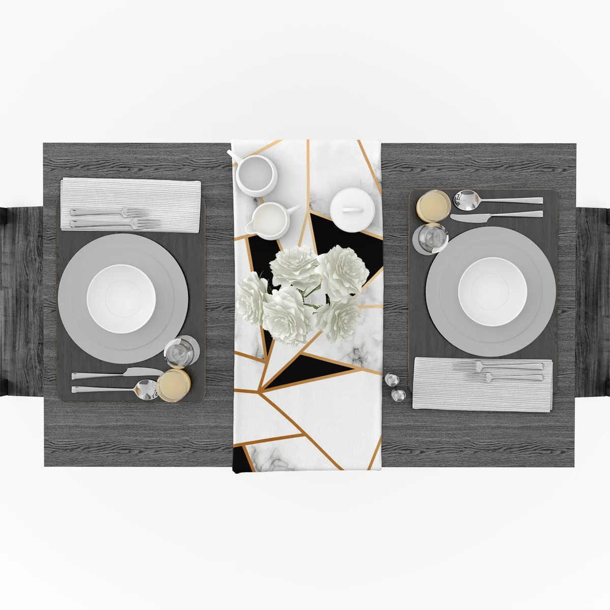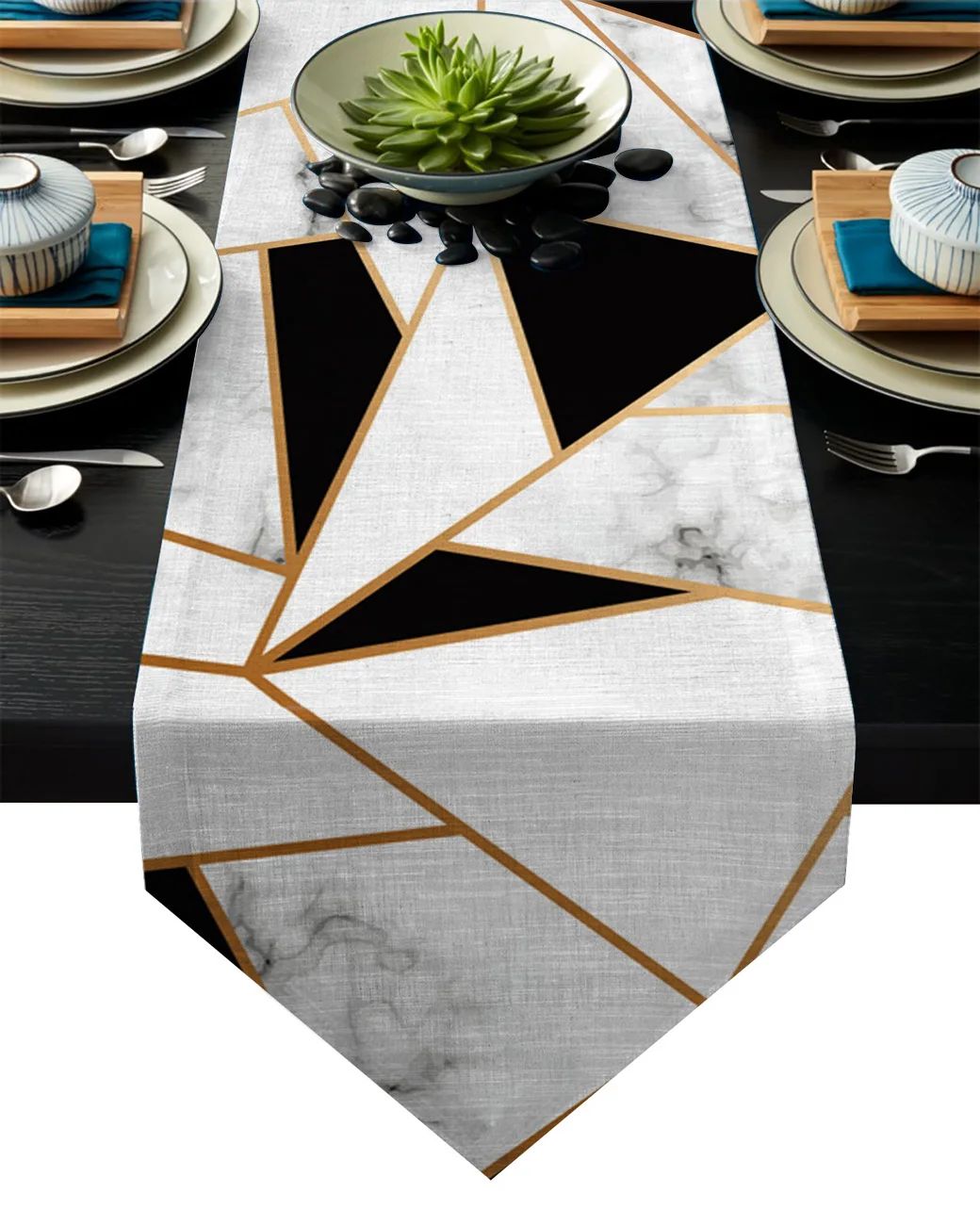 Бегунок для стола с мраморной текстурой, белый, черный квадратные линии, металлическая Сращивание, украшения для домашней вечеринки скатерть