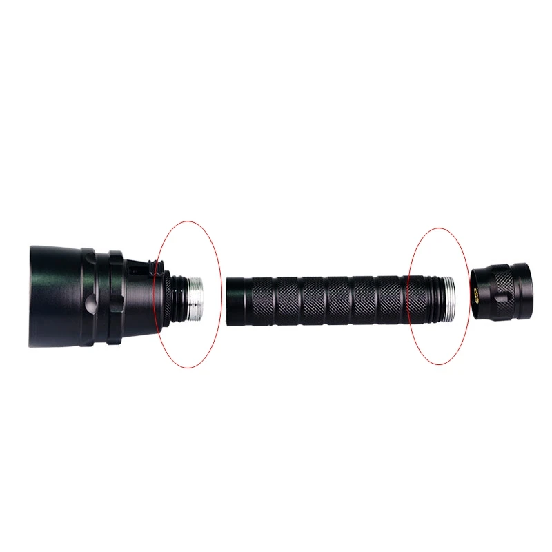 CREE светодиодный фонарик для дайвингаМатериал: алюминиевый сплавРазмер: 20,0*5,0*2,8 см; Вес устройства: 270 гВодонепроницаемость IP68, под водой более 50 метровИсточник светодиодный Дов: 5 Светодиодов CREE XM-L2 или XML T6 светодиодный холодный светильникМаксимальная яркость: 5000 люмен для L2 и 3800 люмен для T6Тип аккумулятора: 2 аккумулятора 18650Время освещения: 1-3 часаВариант посылка A: только фонарикКомплектация B: фонарик, аккумуляторы и зарядное устройство