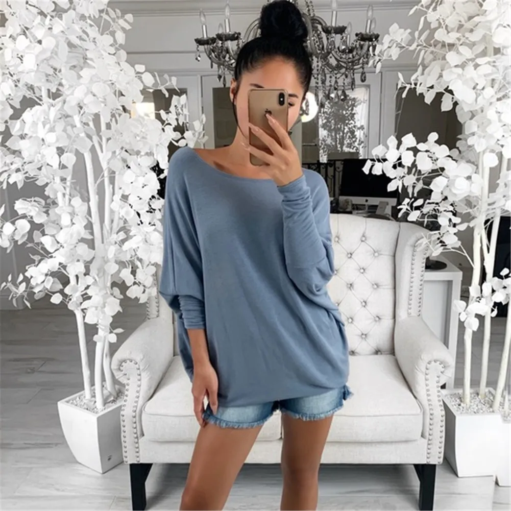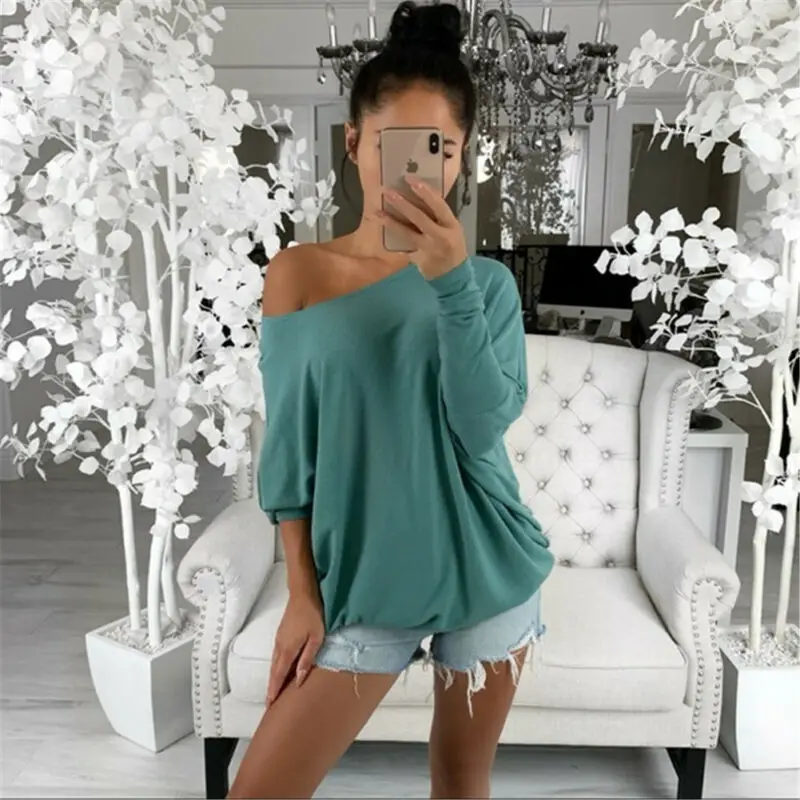 Женская футболка с длинным рукавом и открытыми плечами, Женский однотонный Свободный Повседневный Топ