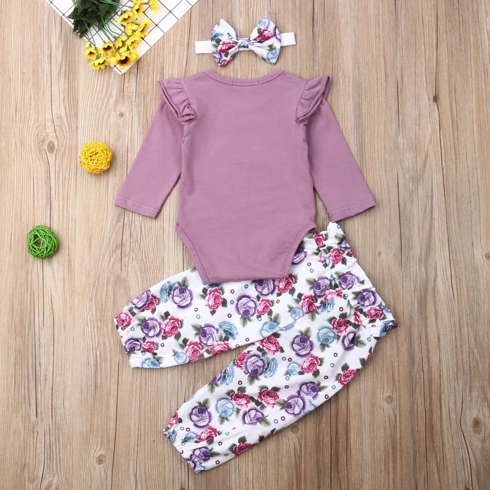 Pudcoco, в наличии в США, Одежда для новорожденных девочек, 3 предмета, комбинезон, боди, штаны с цветочным принтом, комплект одежды