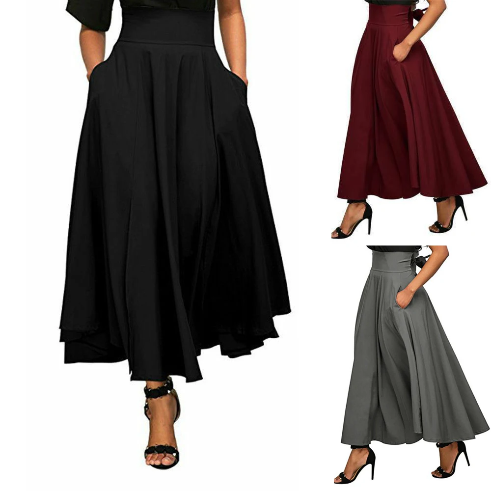 Осенняя Женская эластичная длинная юбка-пачка с завышенной талией и карманами, модная повседневная теплая облегающая однотонная женская юбка
