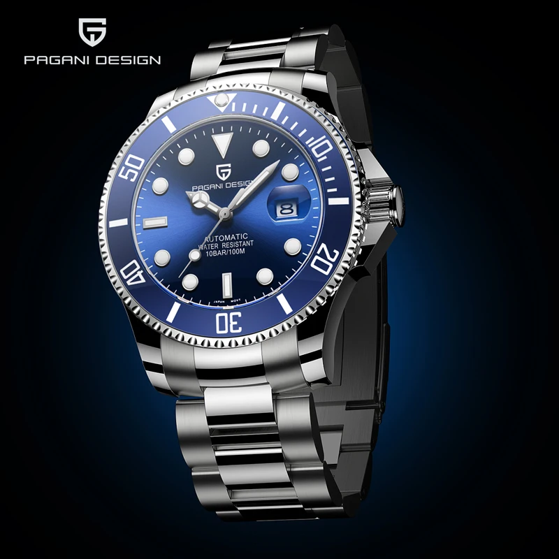 Часы наручные PAGANI Мужские механические, брендовые Роскошные автоматические синие водонепроницаемые деловые спортивные с браслетом из нержавеющей стали