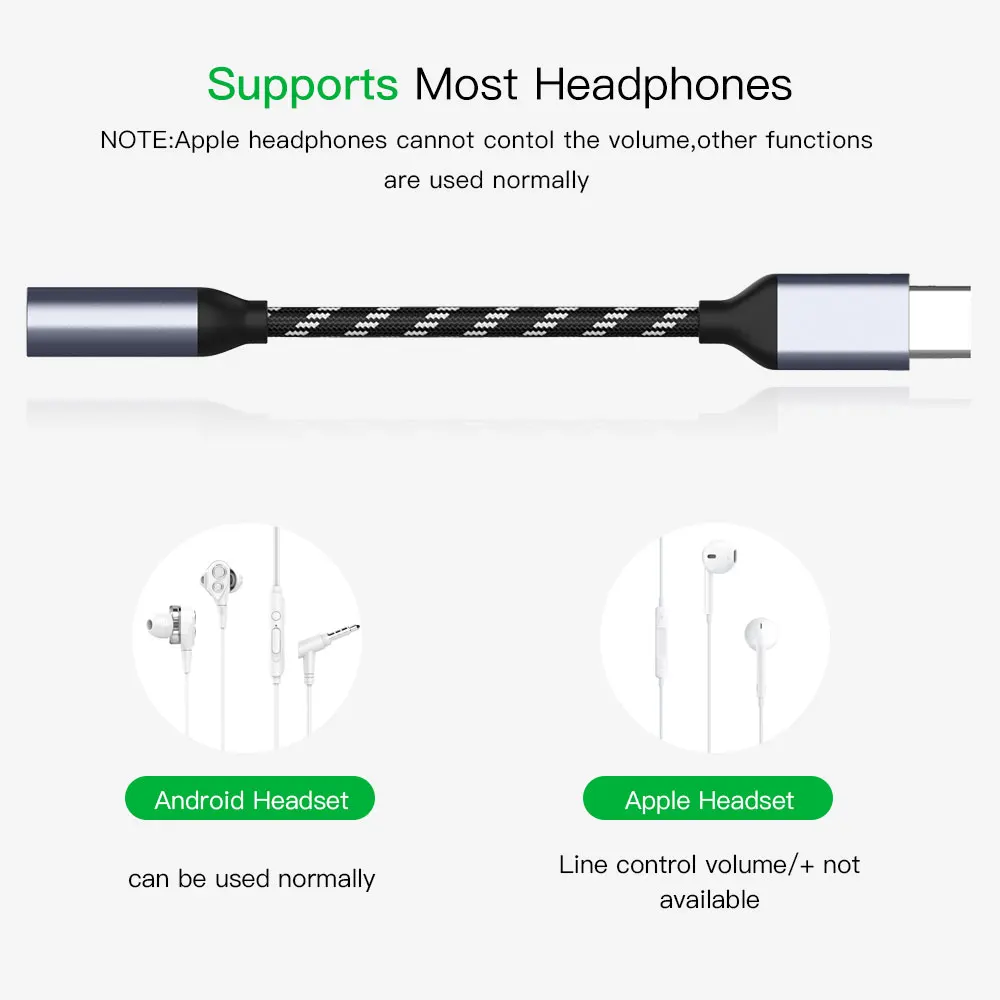 Адаптер для наушников, Кабель с разъемом USB Type C на 3,5 мм, AUX ...