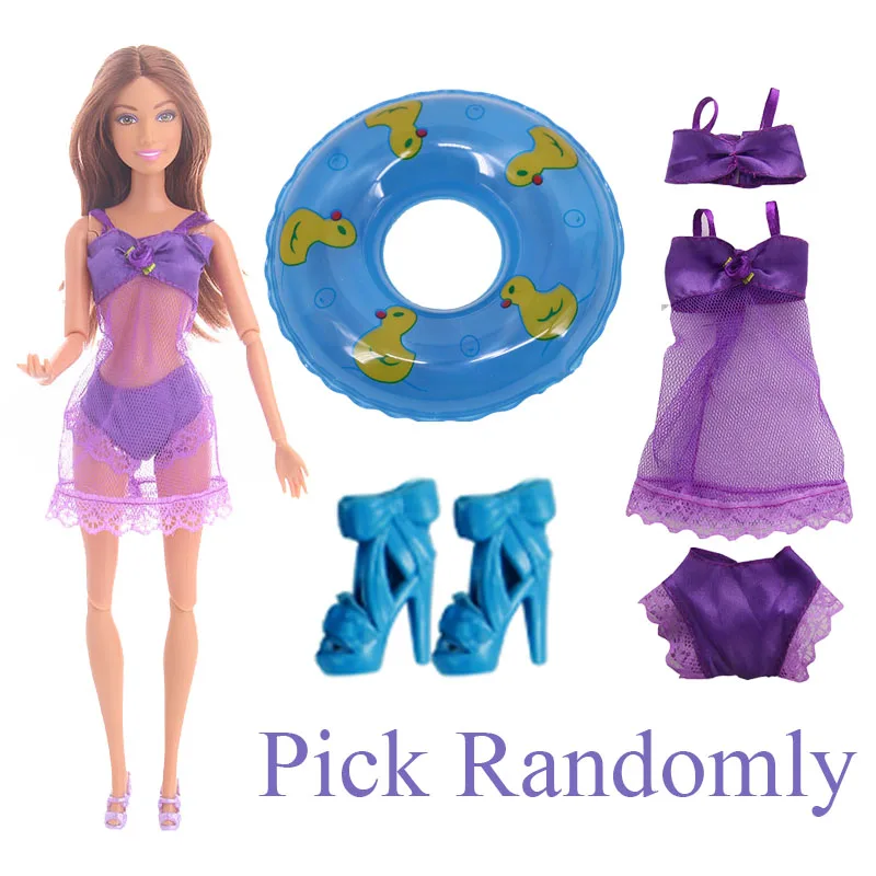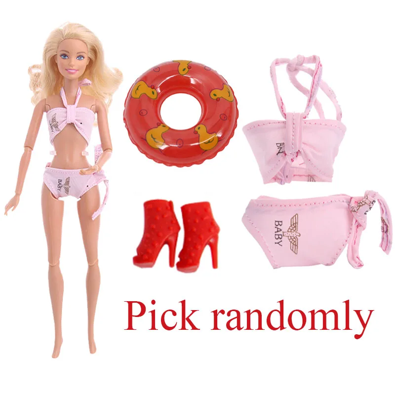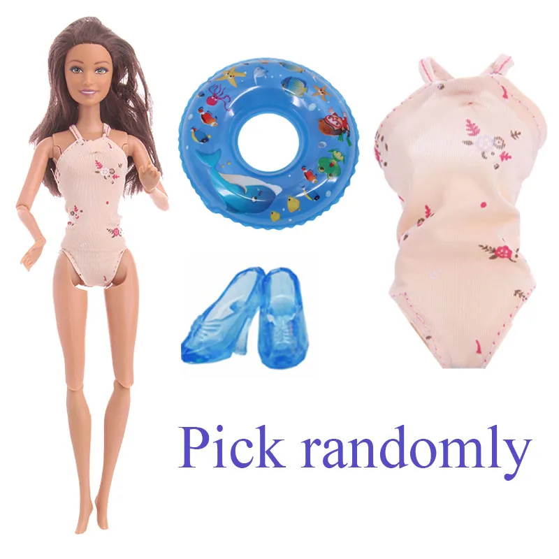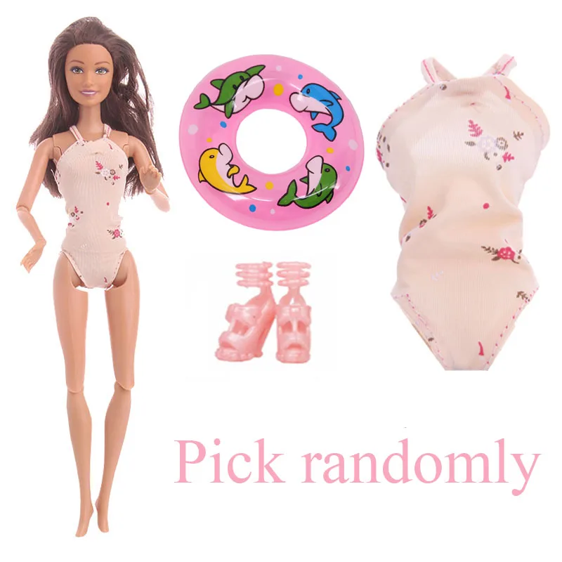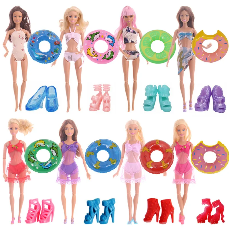 1 комплект, купальники для кукол, аксессуары = 1 купальник для куклы, купальник + 1 пара сандалий + 1 спасательный круг для плавания, игрушки для девочек