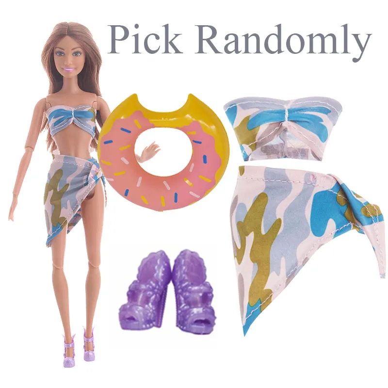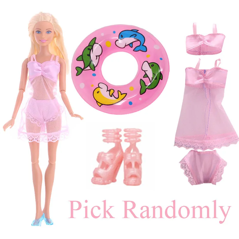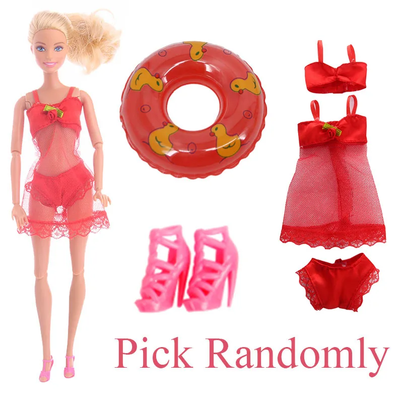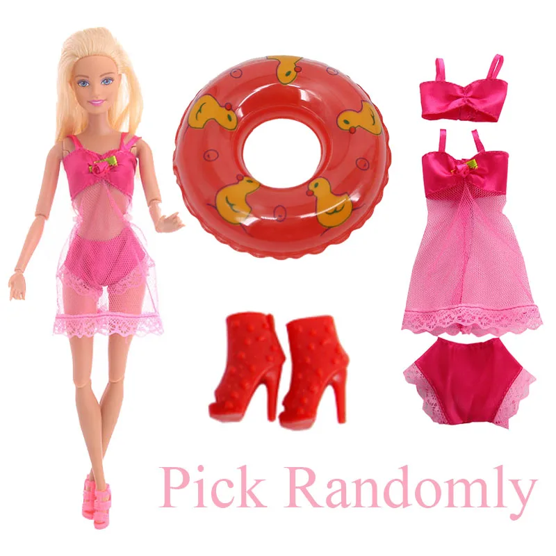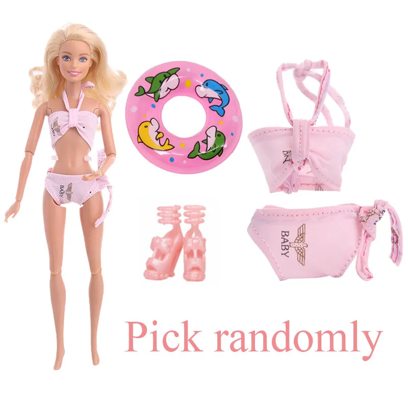 1 комплект, купальники для кукол, аксессуары = 1 купальник для куклы, купальник + 1 пара сандалий + 1 спасательный круг для плавания, игрушки для девочек