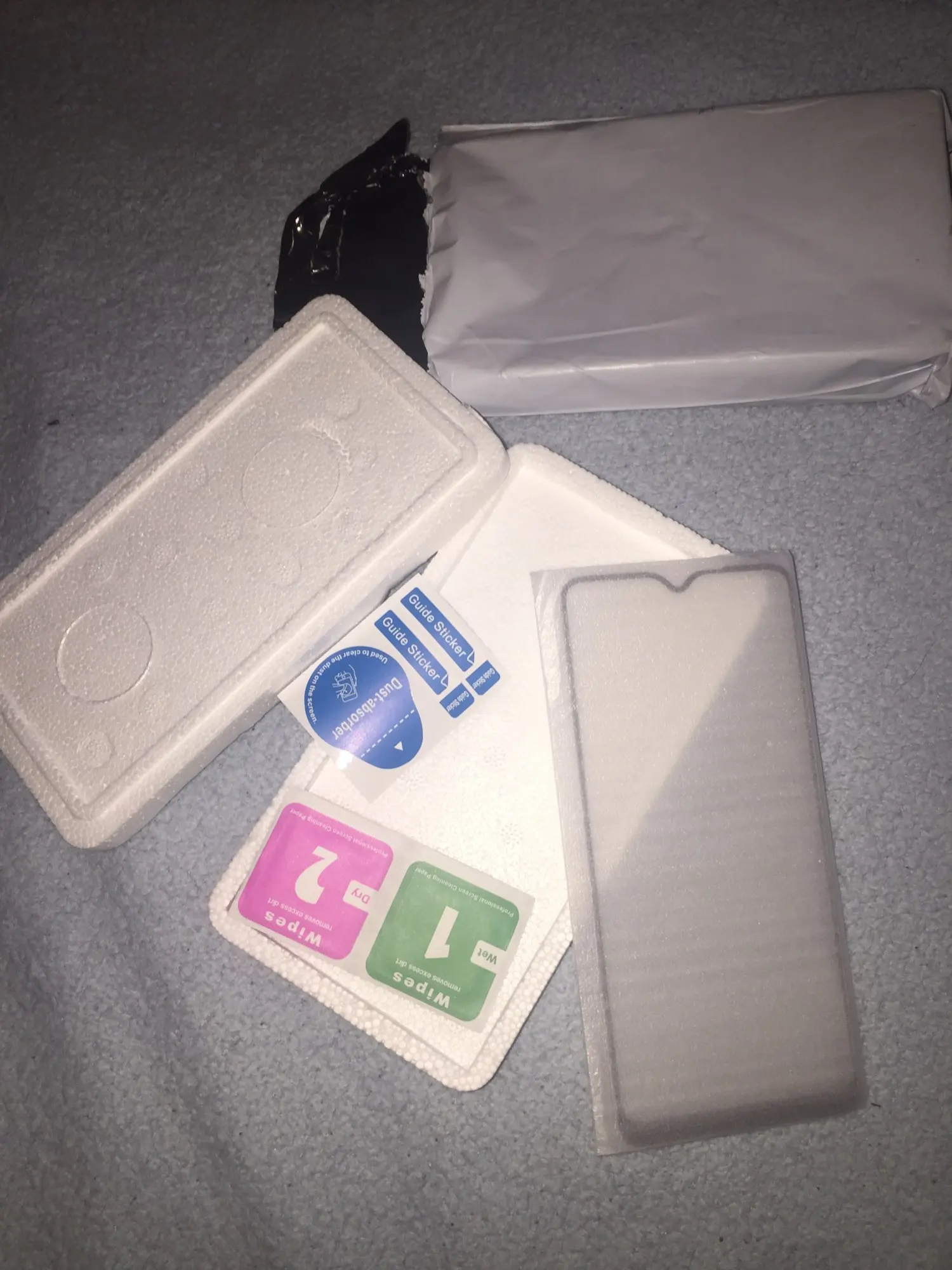 Отлично упаковано.,в пенопластовую коробочку.Стекло целое.Внутри две салфетки,наклейки.Салфетку 1 не проверяла(бывают сухими),запаслась,так скажем ,в прок.