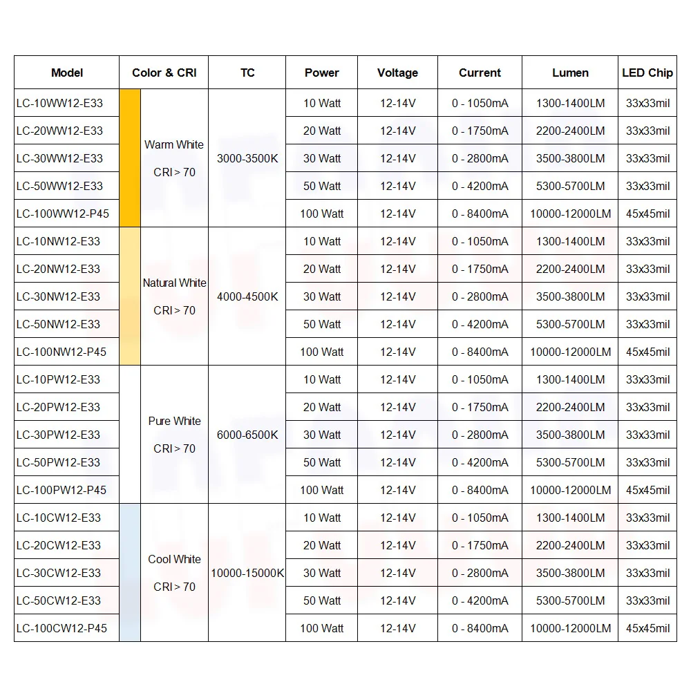 ( Постоянный ток светодиодный трансформаторы подготовлены для использования с рекомендуется для Высокая мощность COB светодиодный чип )