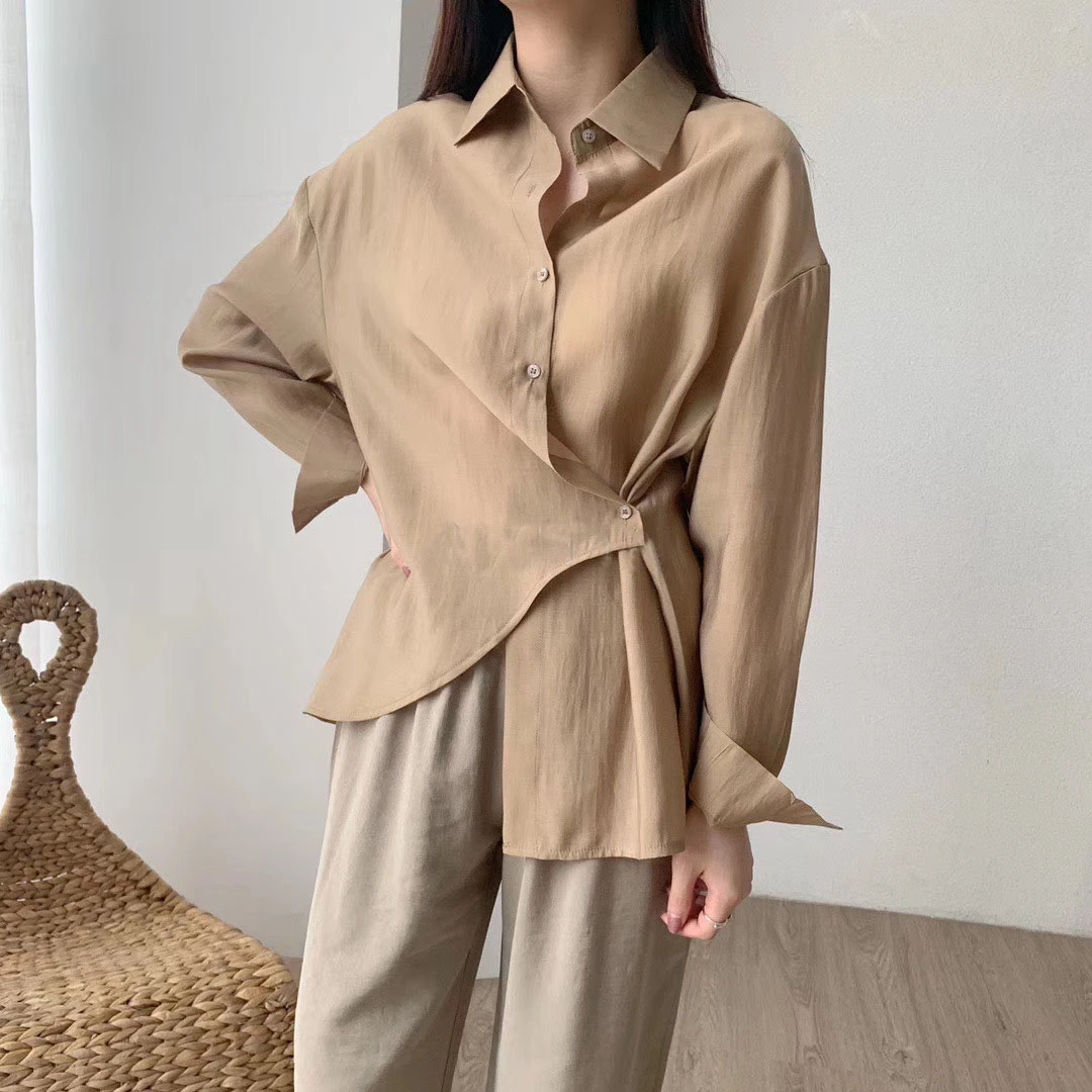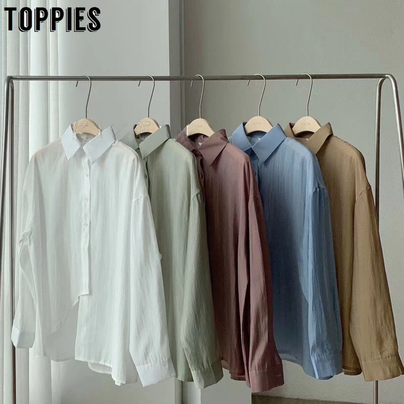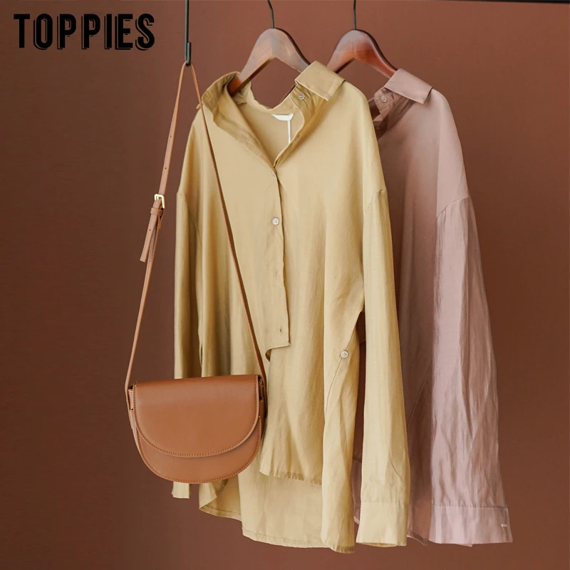 Блузка Toppies Женская с длинным рукавом, Белый Топ, Однотонная рубашка из асимметричного хлопка, весна 2022