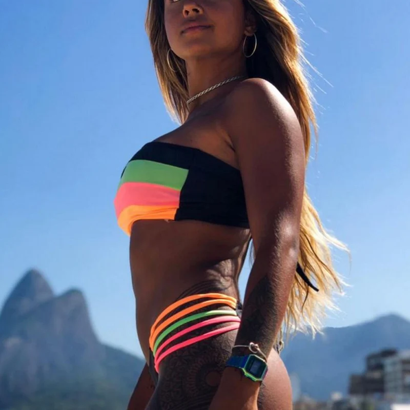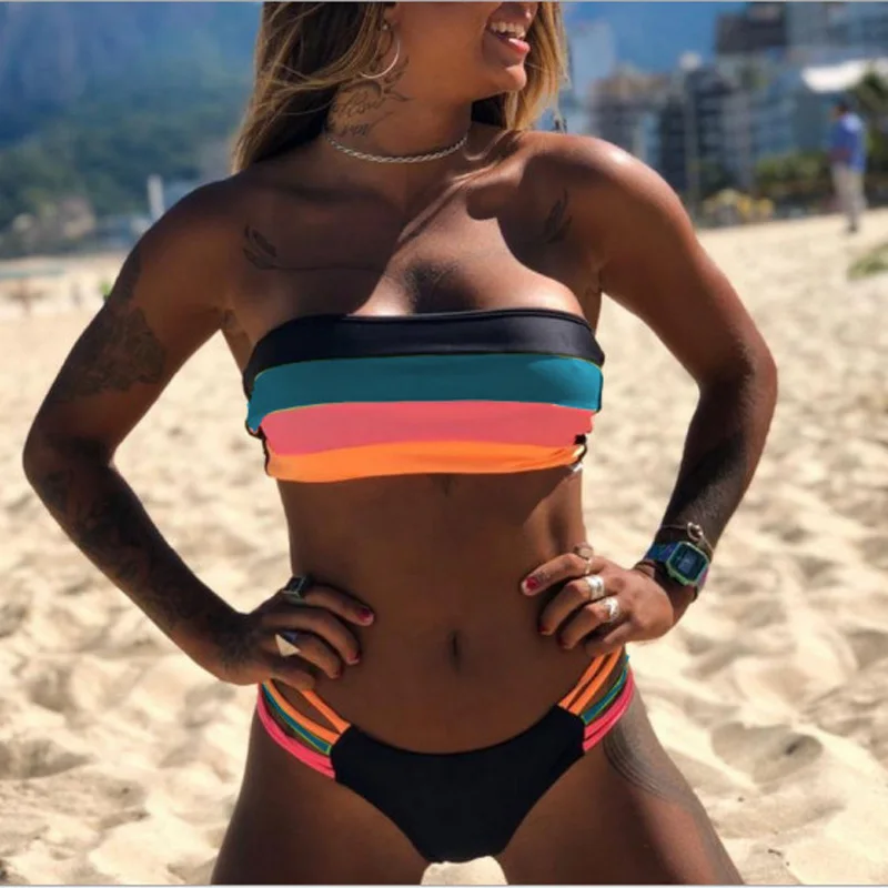 Бикини бандо 2020, пикантный женский купальный костюм, женская купальная одежда, комплект бикини в стиле пэчворк, купальный костюм, пляжная одежда для плавания