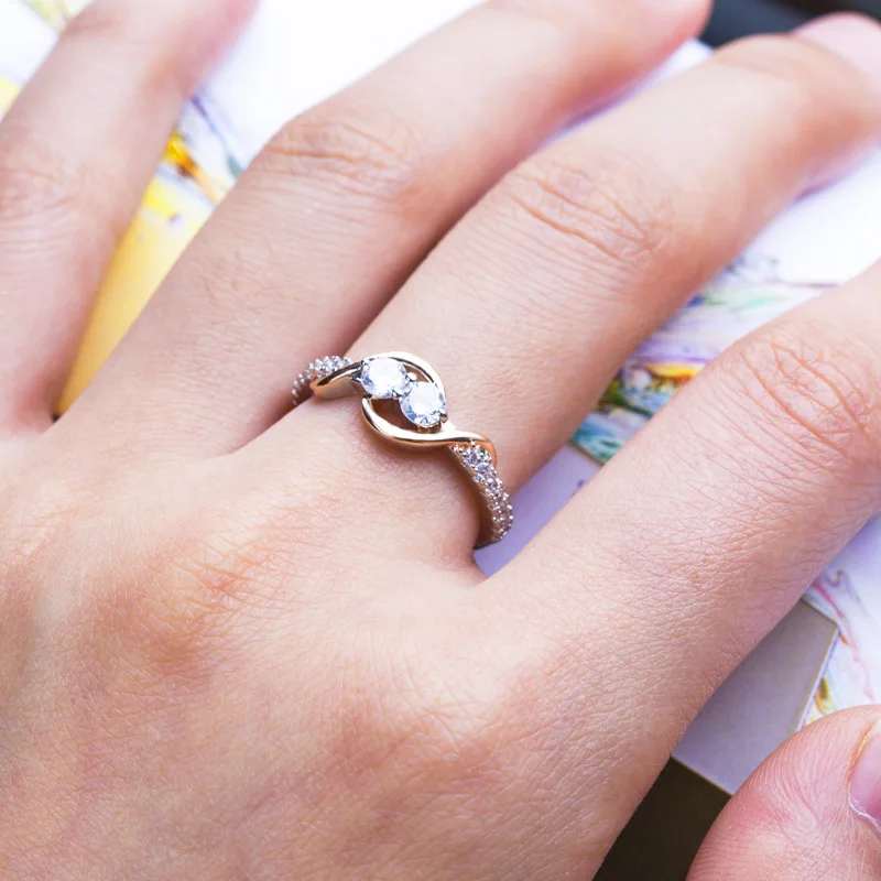 Двухцветное кольцо с кристаллами для сестер, братьев, семьи, обруча...