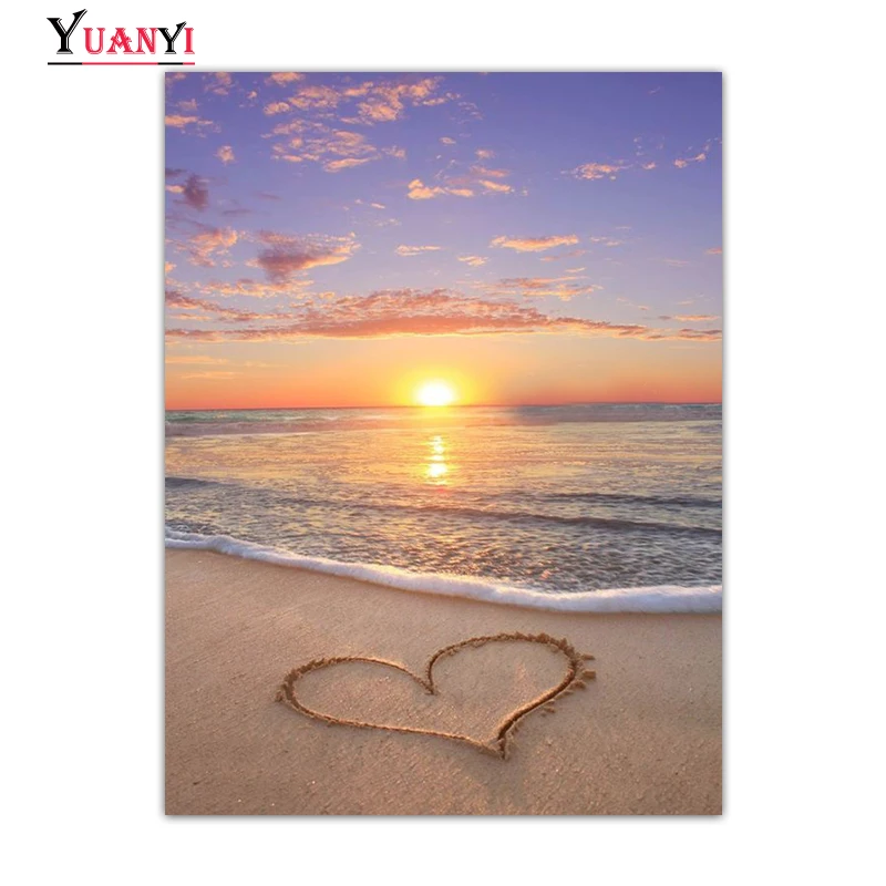 5D Сделай Сам полностью квадратная Алмазная вышивка полная круглая мозаика Алмазная Картина море закат сердце природа пейзаж домашний декор