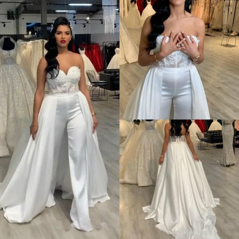 Новинка 2020, женские комбинезоны, свадебная Юбка со съемной юбкой, Длинные вечерние платья, кружевные свадебные платья abiye с аппликацией