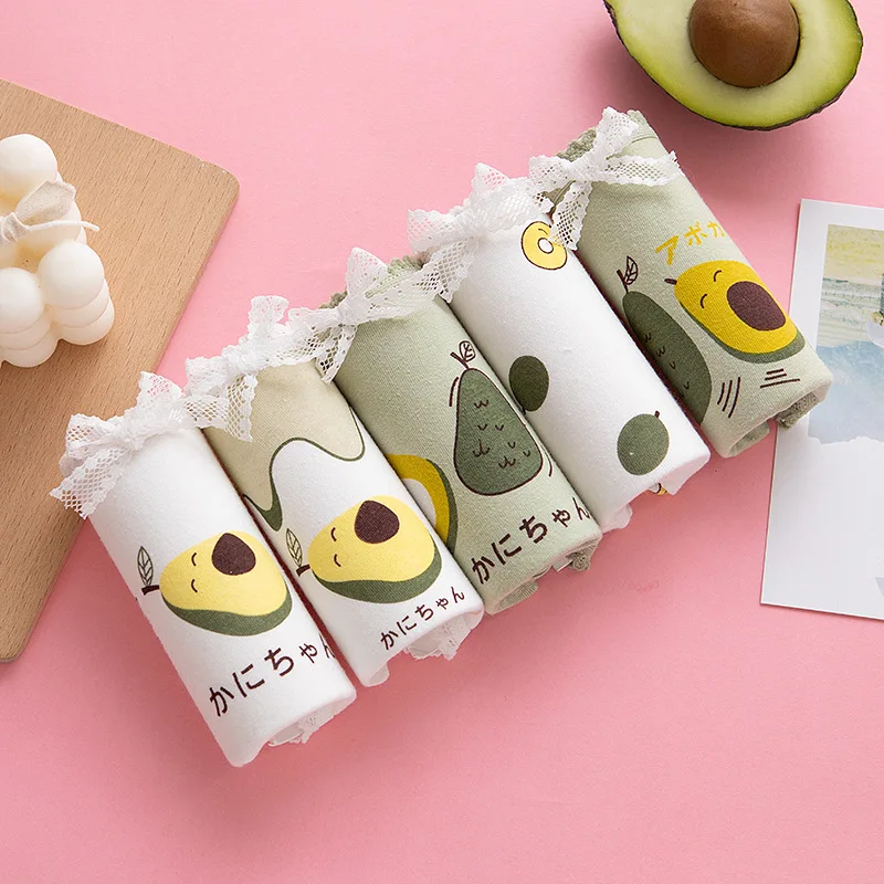 Нижнее белье 5 шт.лот, Симпатичные хлопковые трусики авокадо большо...
