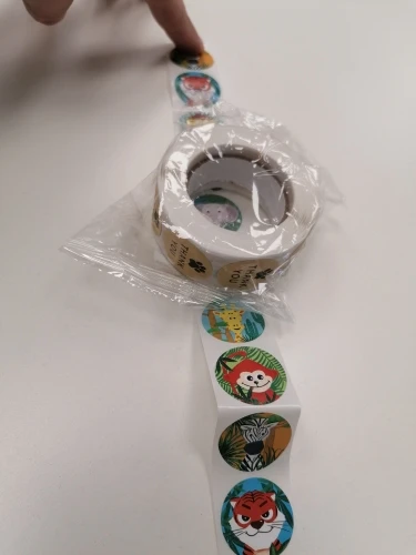 Он прибыл в рулоне и с некоторыми подарочными наклейками! Они божественны.