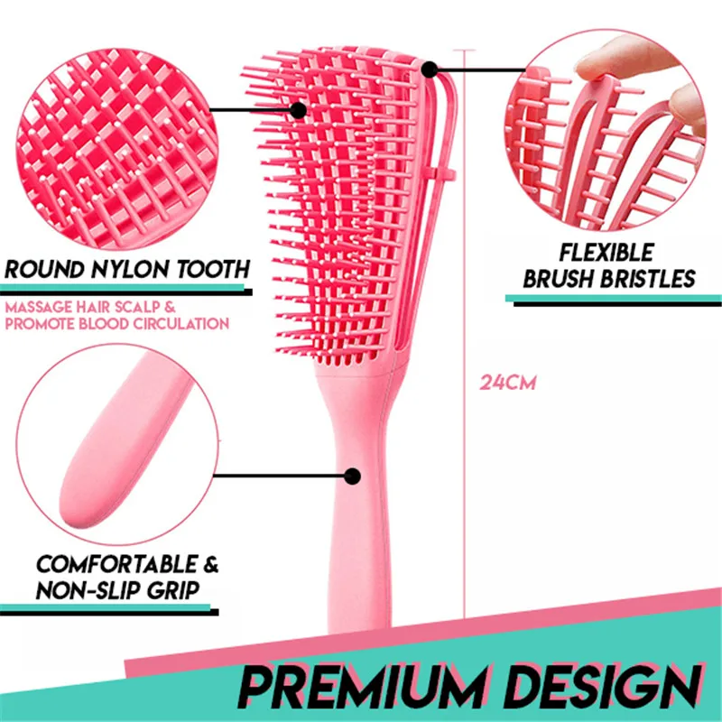 Гибкие головки кистей с раздельными щетинками специально разработаны для распутывания вьющихся, волнистых, коленных, кудрявых или нормальных волос без повреждения волос.